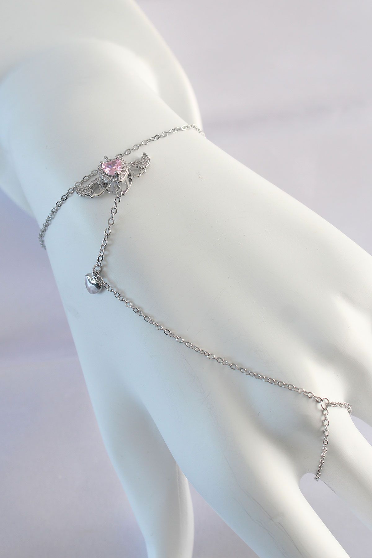 316L Çelik Gümüş Renk Pembe Zirkon Taşlı Kanatlı Kalp Model Şahmeran - TJ-SN584