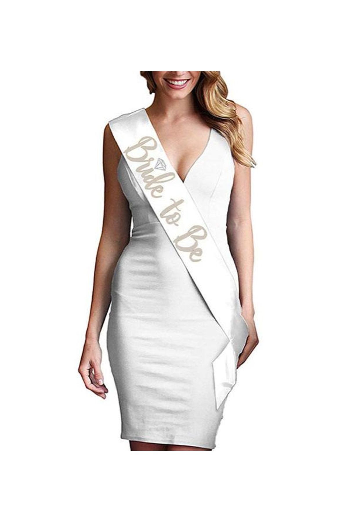 Bride To Be Saten Kuşak Beyaz Üzeri Metalize Gümüş Yazılı 160x9.5 cm