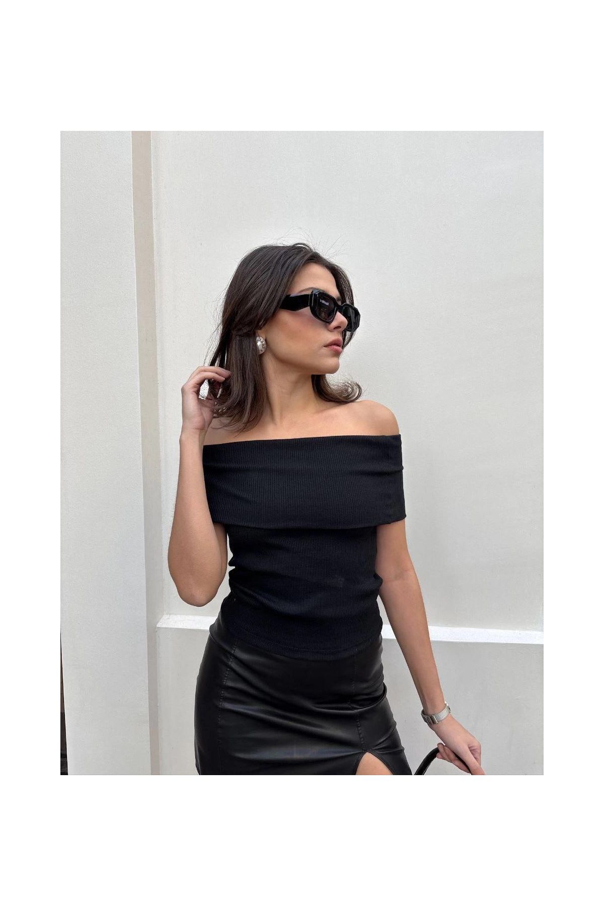 Madonna yaka sıfır kol bluz