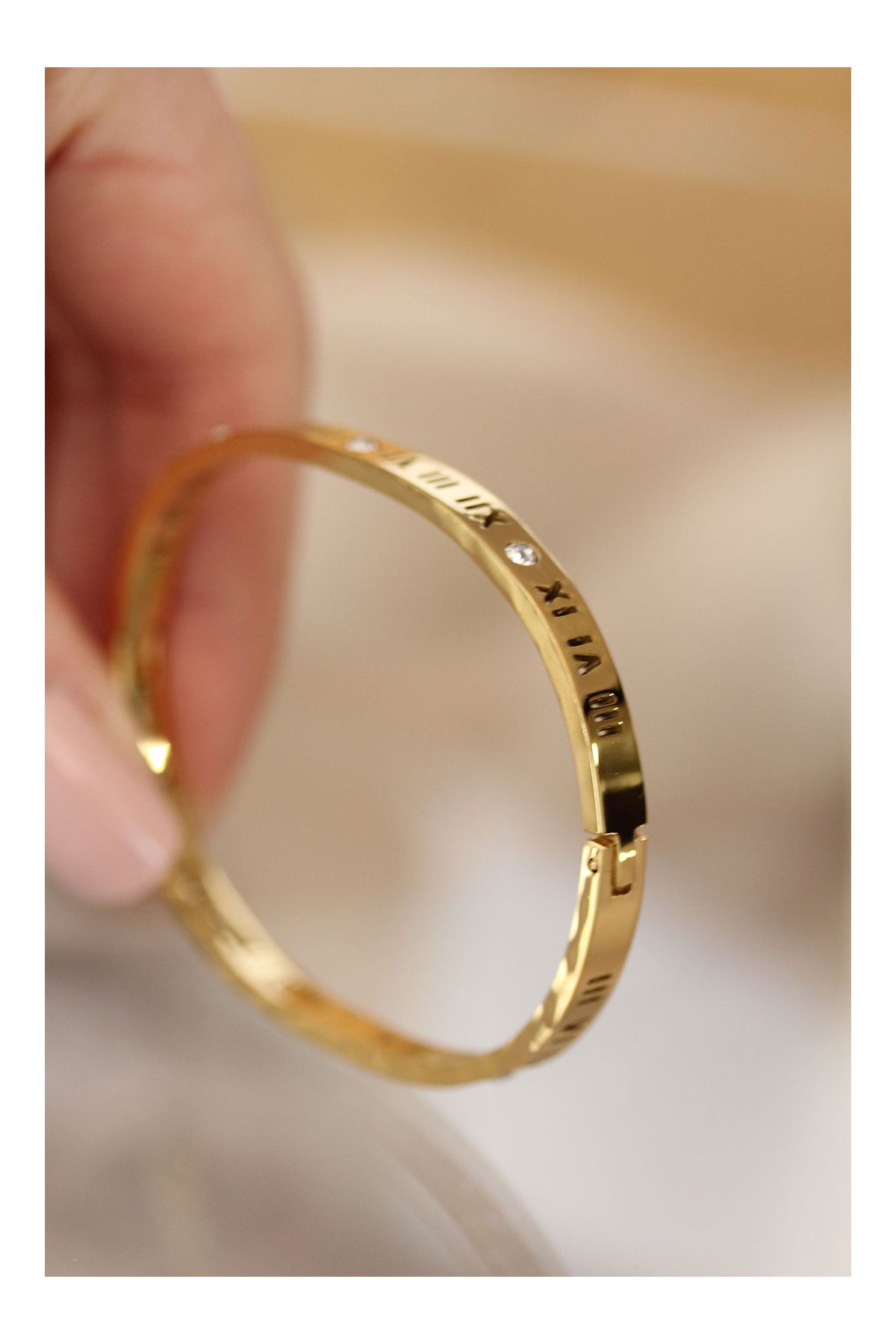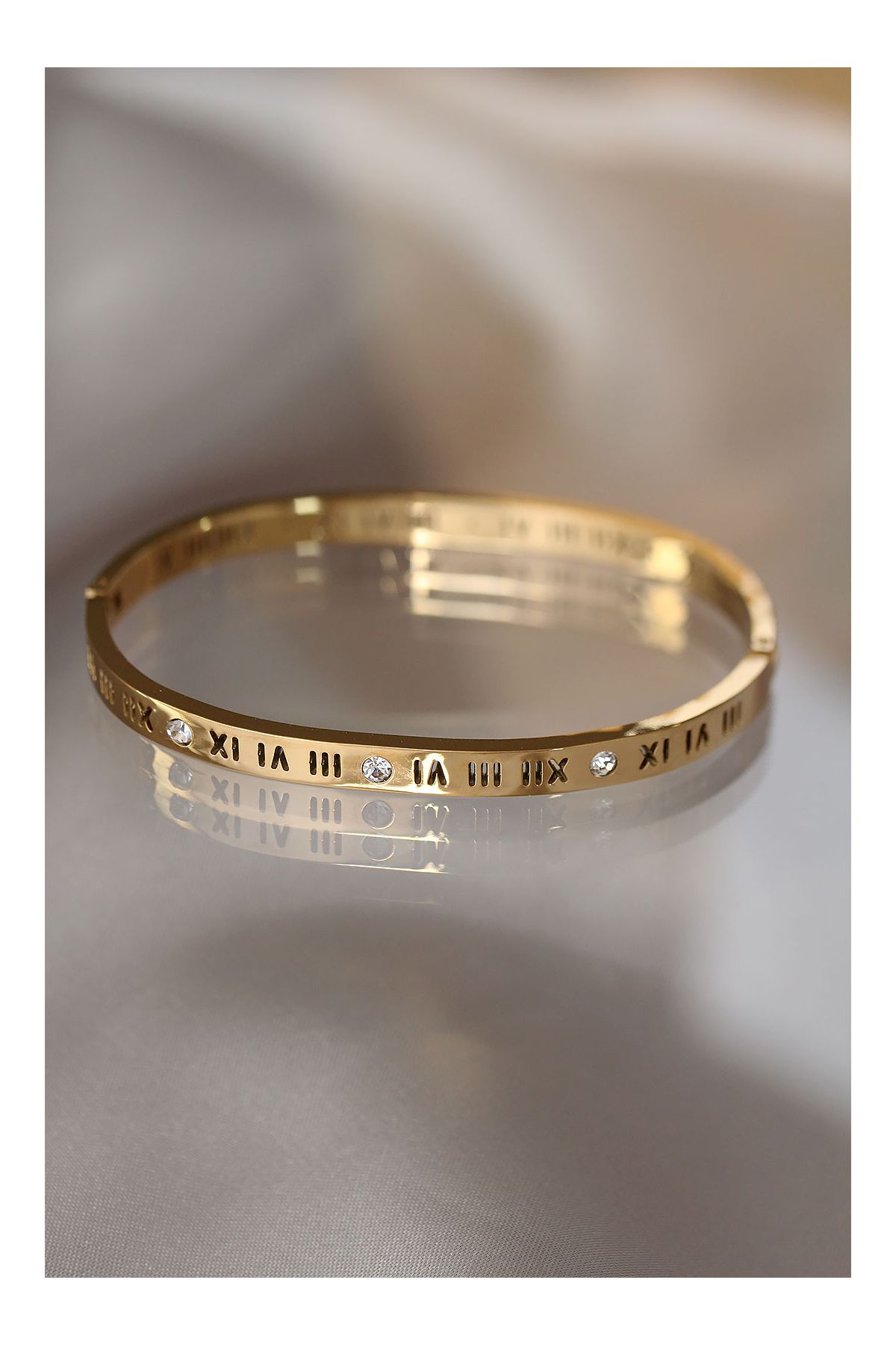 316L Çelik Roma Rakamlı Gold Renk Bilezik Kelepçe - TJ-BB3565