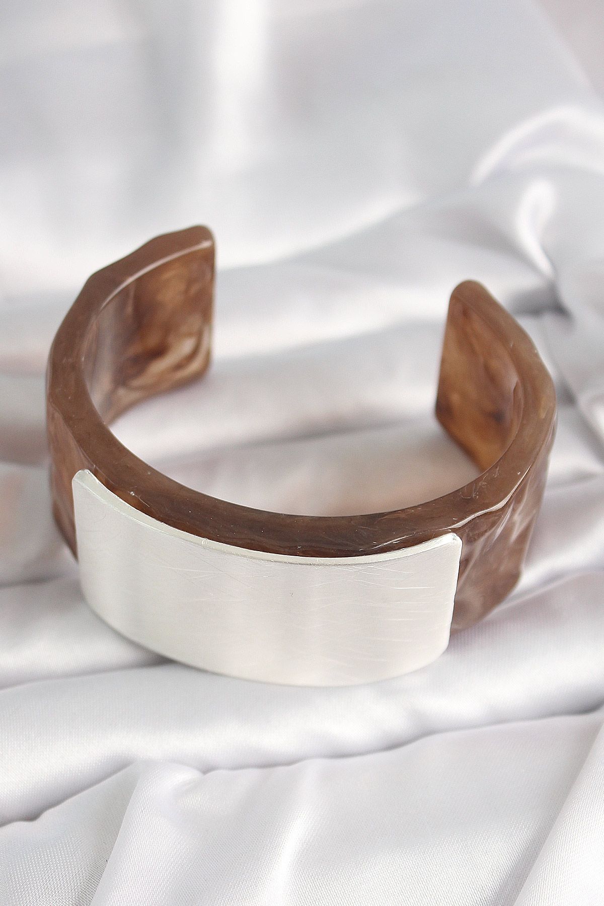 Kahverengi Mermer Desen Akrilik Plastik Gümüş Dikdörtgen Plaka Vintage Kadın Bilezik - TJ-BB6676