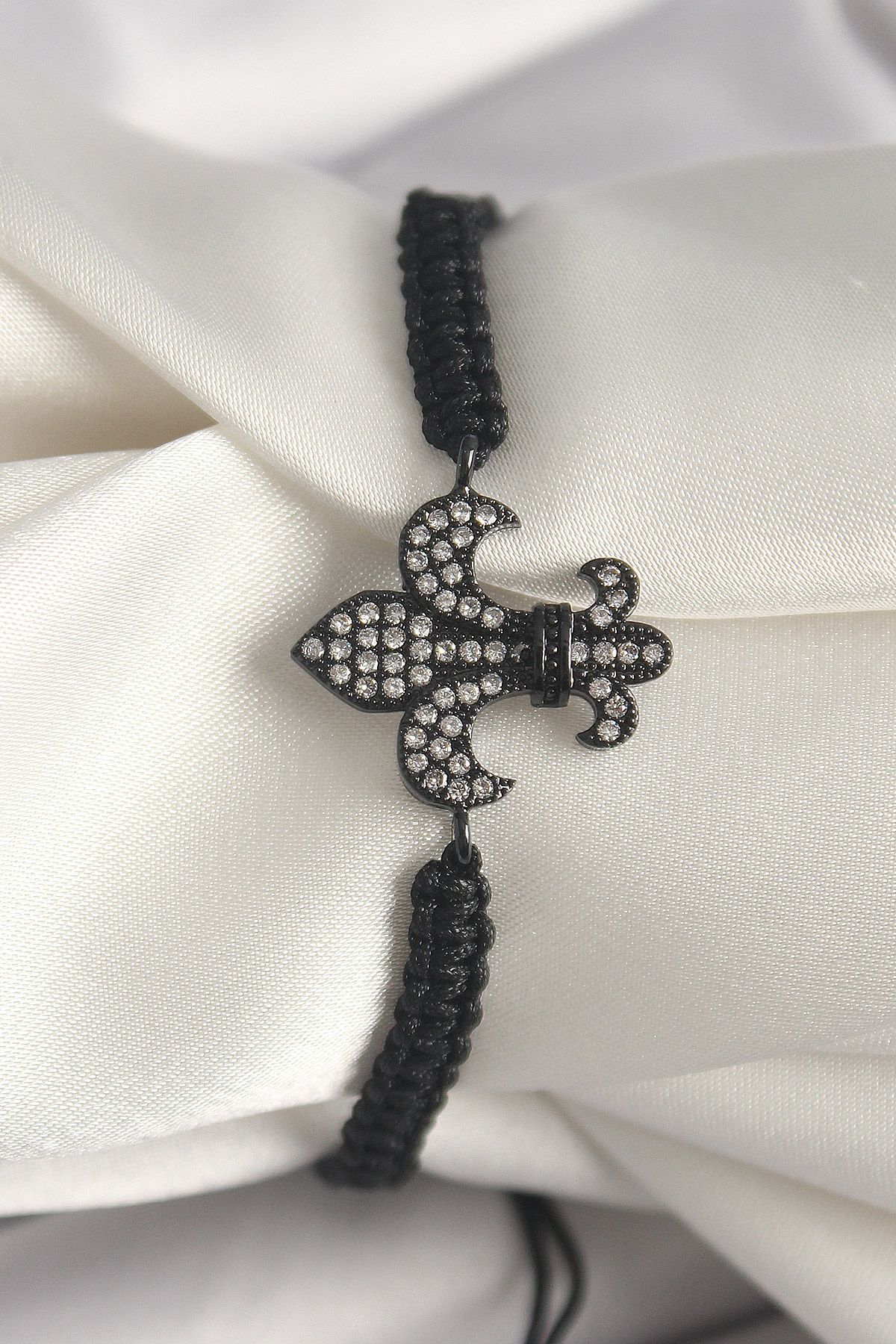 Pirinç Siyah Renk Zirkon Taşlı Zambak Figür Asansörlü Makrome Model Kadın Bileklik - TJ-BB6800