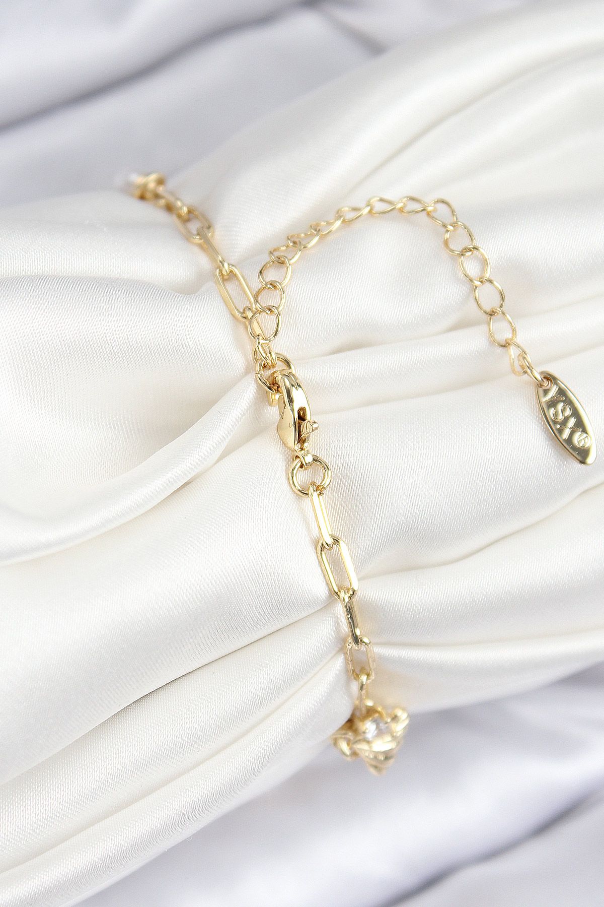 Pirinç Zirkon Taşlı Deniz Kabuğu Model Gold Renk Kadın Bileklik - TJ-BB7772