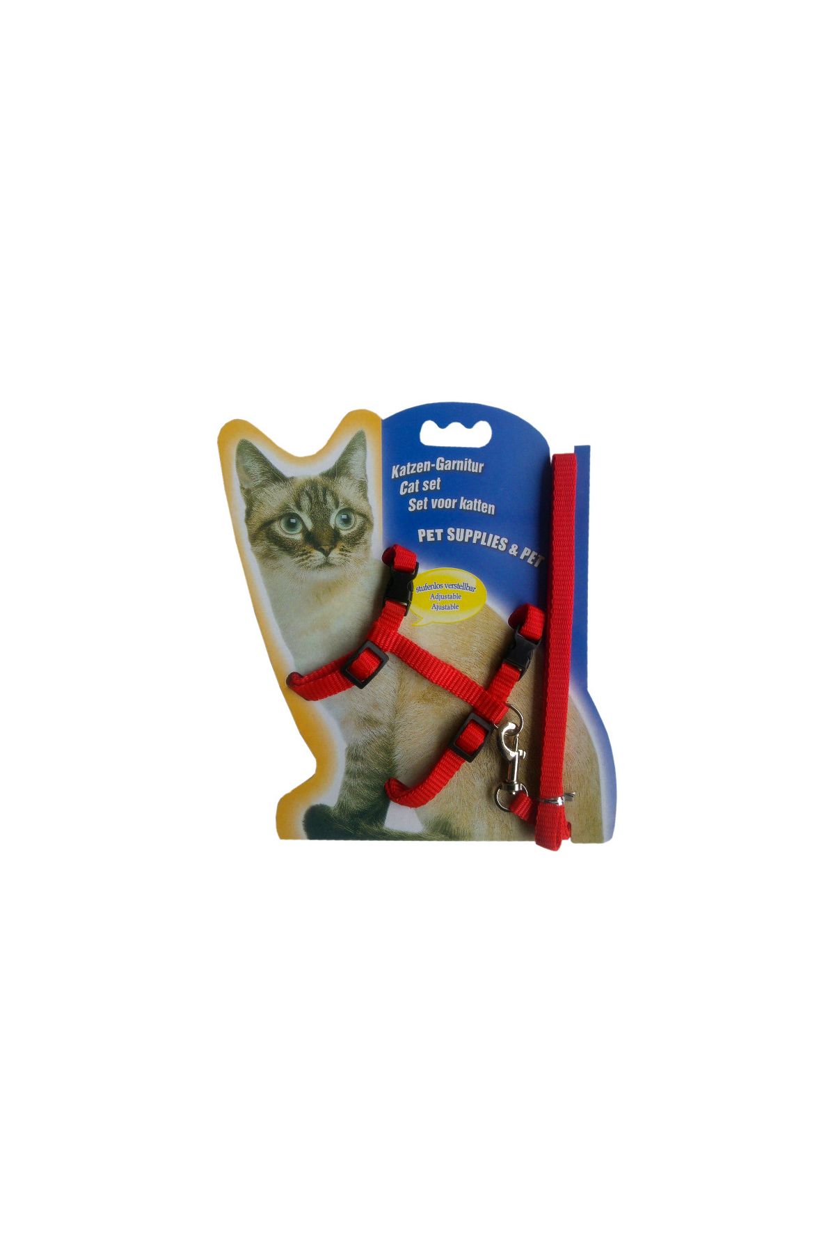 Yetişkin kediler için üretilmiş kedi göğüs bel tasmasıdır. Boyun ve göğüs kısmı ayarlanabilir özellikte ve klipslidir. Göğüs tasması ve gezdirme tasması set halindedir.