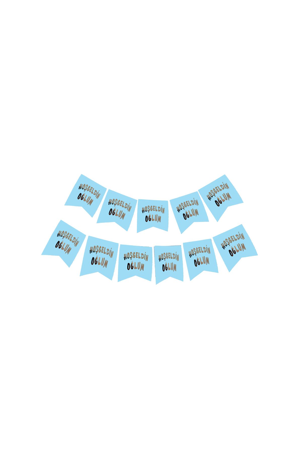 Hoşgeldin Oğlum Yazılı Mavi Üzeri Gümüş Yeni Doğan Bebek Doğum Süsü Afiş Bayrak Flama