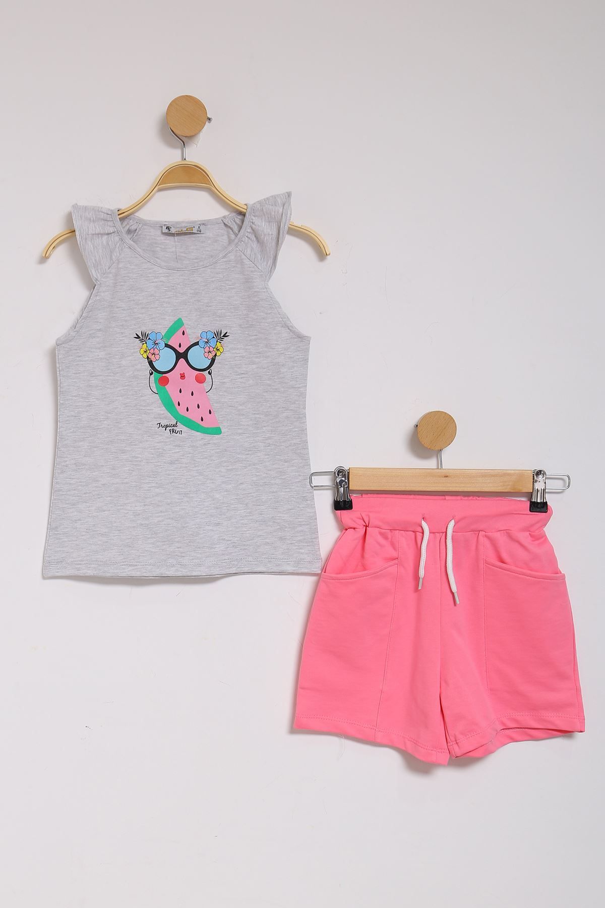 275 3-7 Yaş Baskılı Elbise Gri