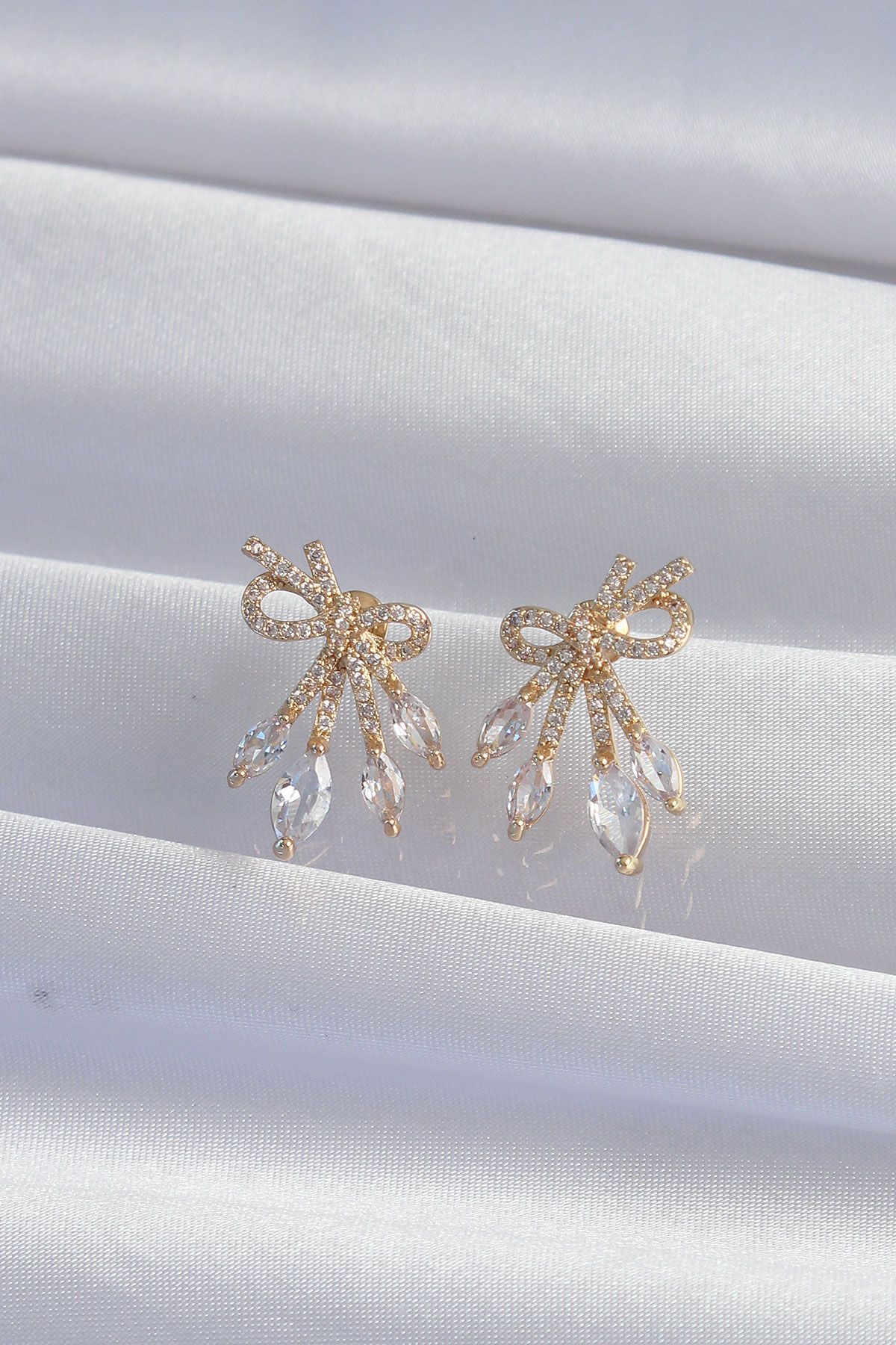 Pirinç Gold Renk Zirkon Taşlı Fiyonk Küpe - TJ-BKP9293