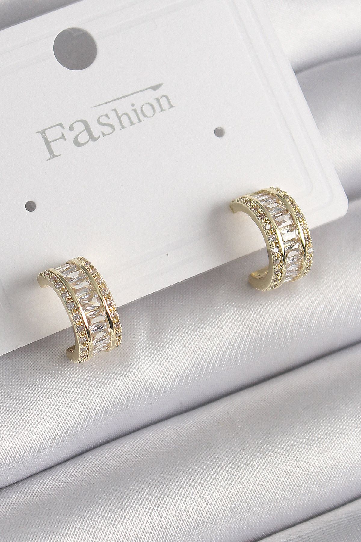 Pirinç Gold Renk Zirkon Taşlı Halka Model Kadın Küpe - TJ-BKP9987