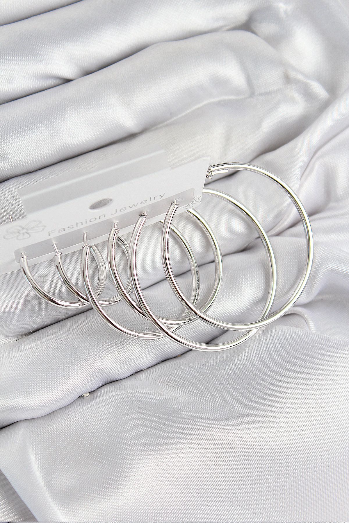 Pirinç Halka Model Gümüş Renk Kadın Set Küpe - TJ-BKP11040