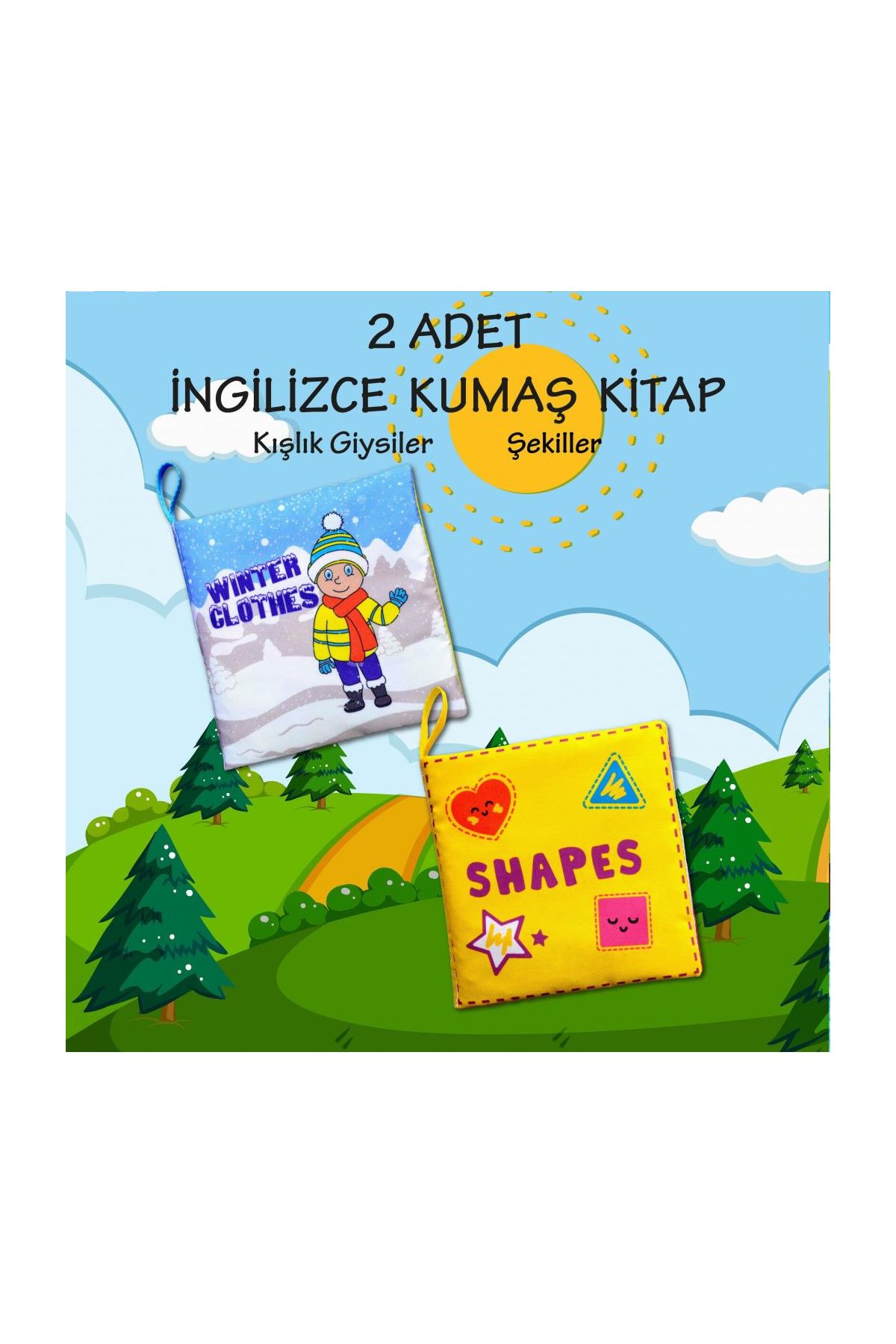 247 2 Kitap İngilizce Kışlık Giysiler ve Şekiller Kumaş Sessiz Kitap