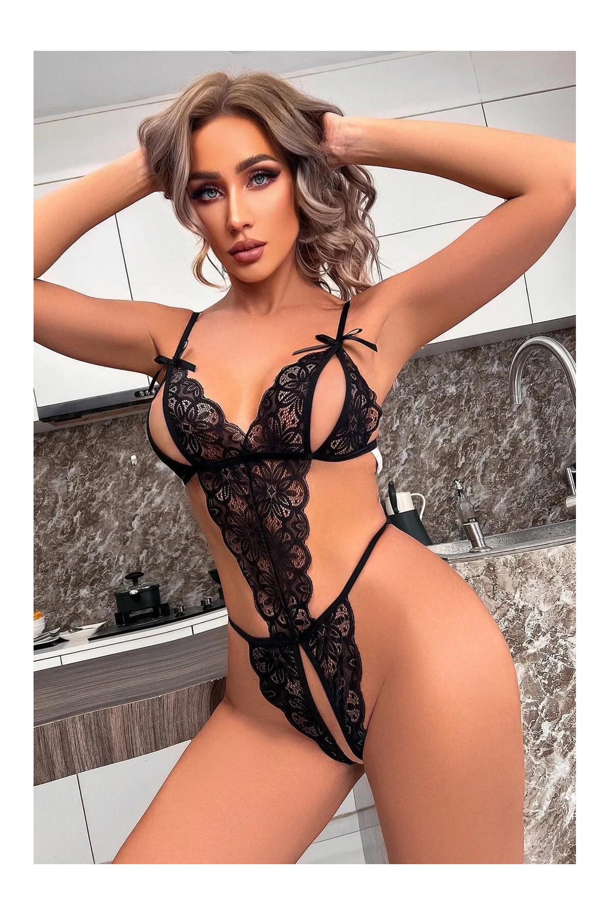 Özel Bölgesi Açık Dantelli Fantazi Babydoll