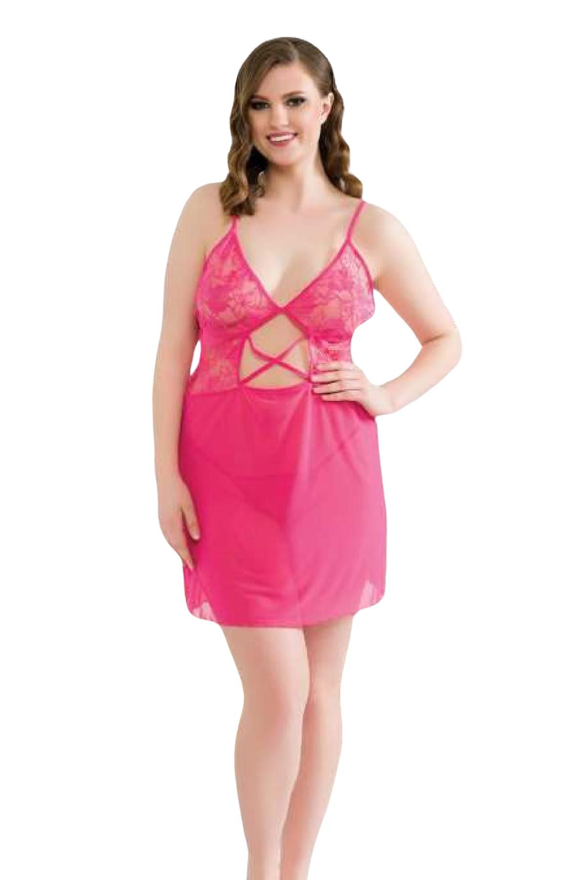Kadın Fantezi Büyük Beden Tül Gecelik Harness Erotik Kıyafet 5327 Pembe - Turk