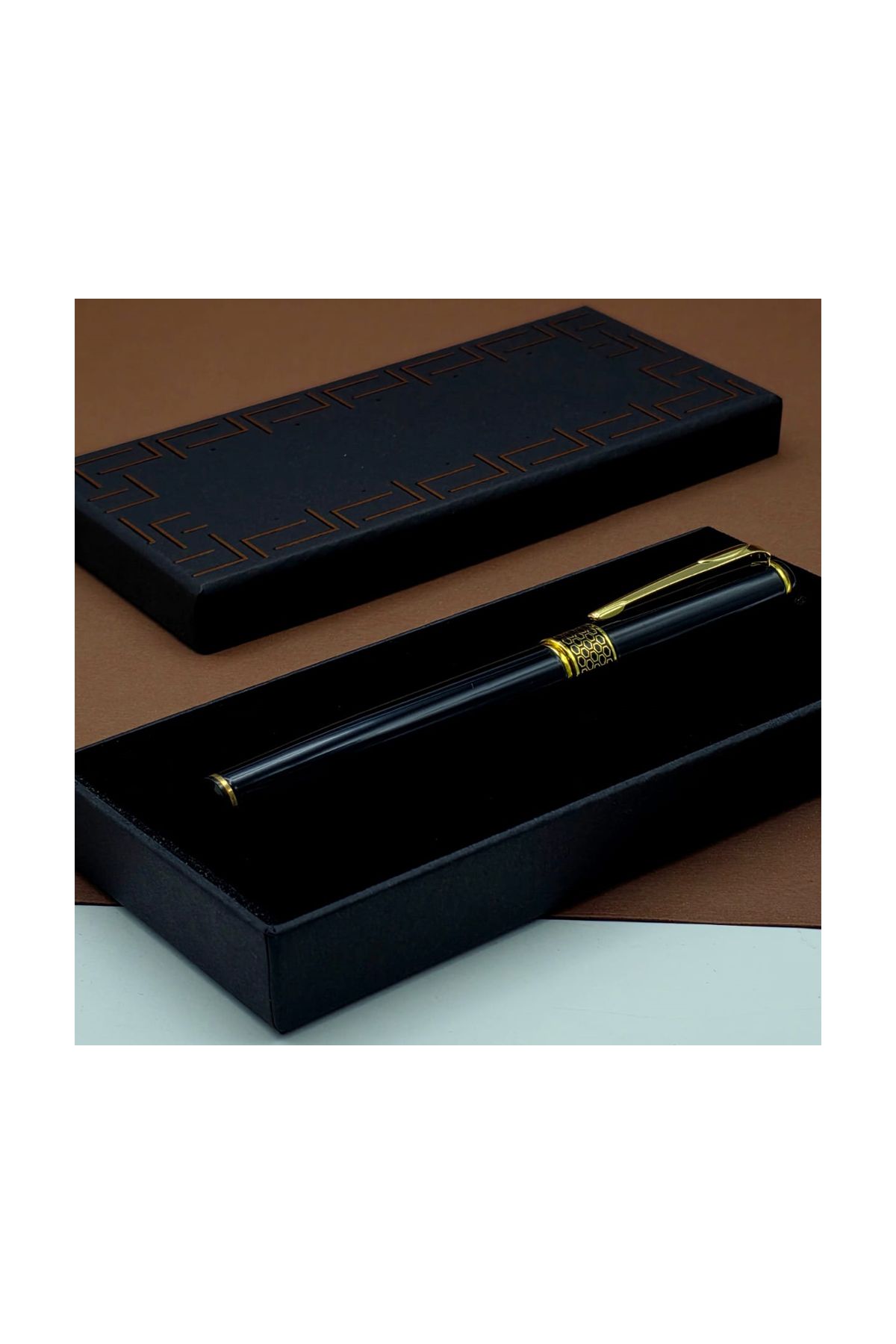 Siyah Metal Kalem Üzerinde Desen Bulunmaktadır.