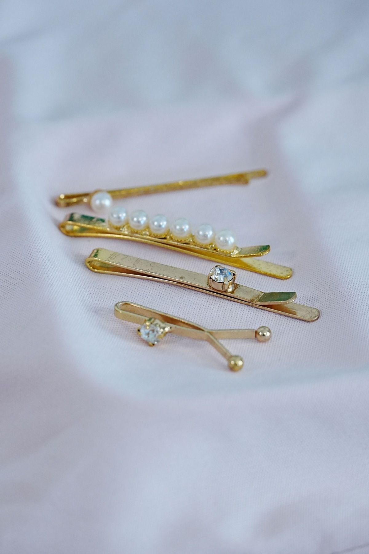 İncili Altın Renk Yan Toka Kombini 4lü