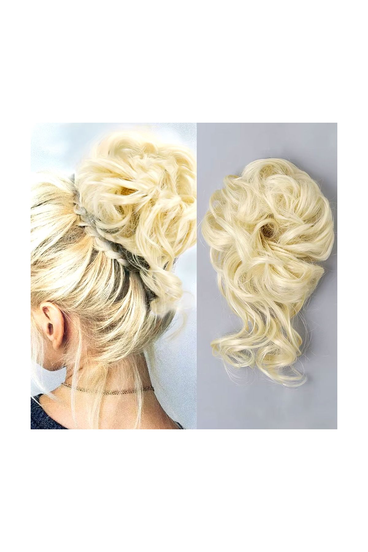 Saçlı Lastikli Kuyruklu Topuz Toka / Platin
