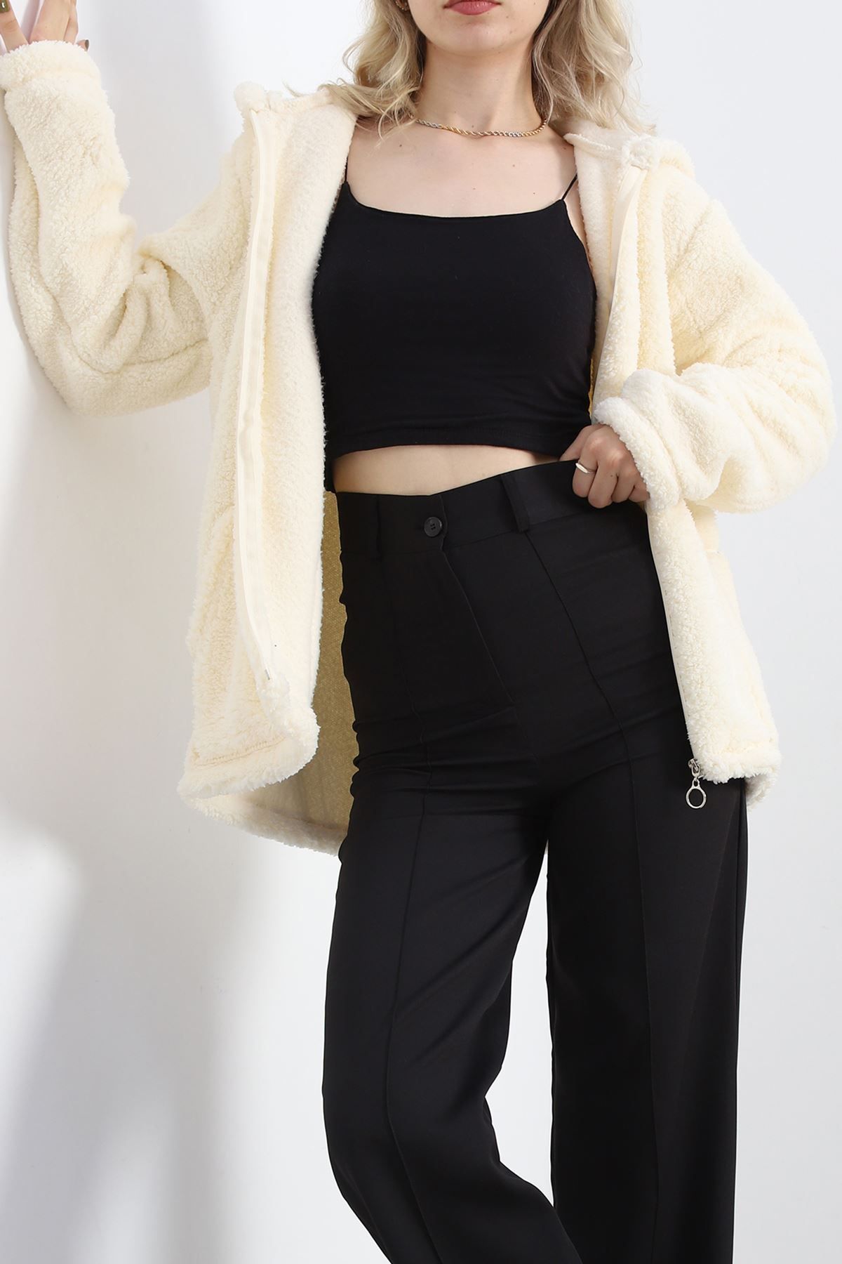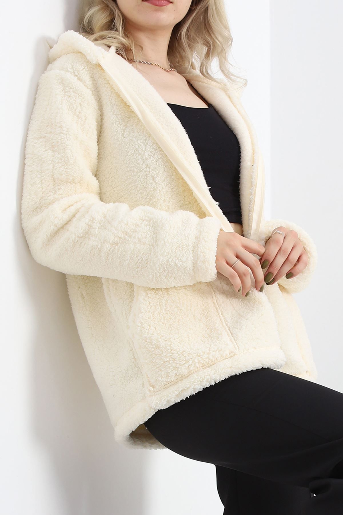 Büyük Beden Peluş Mont Krem