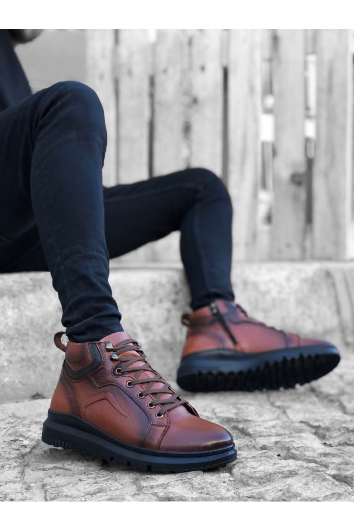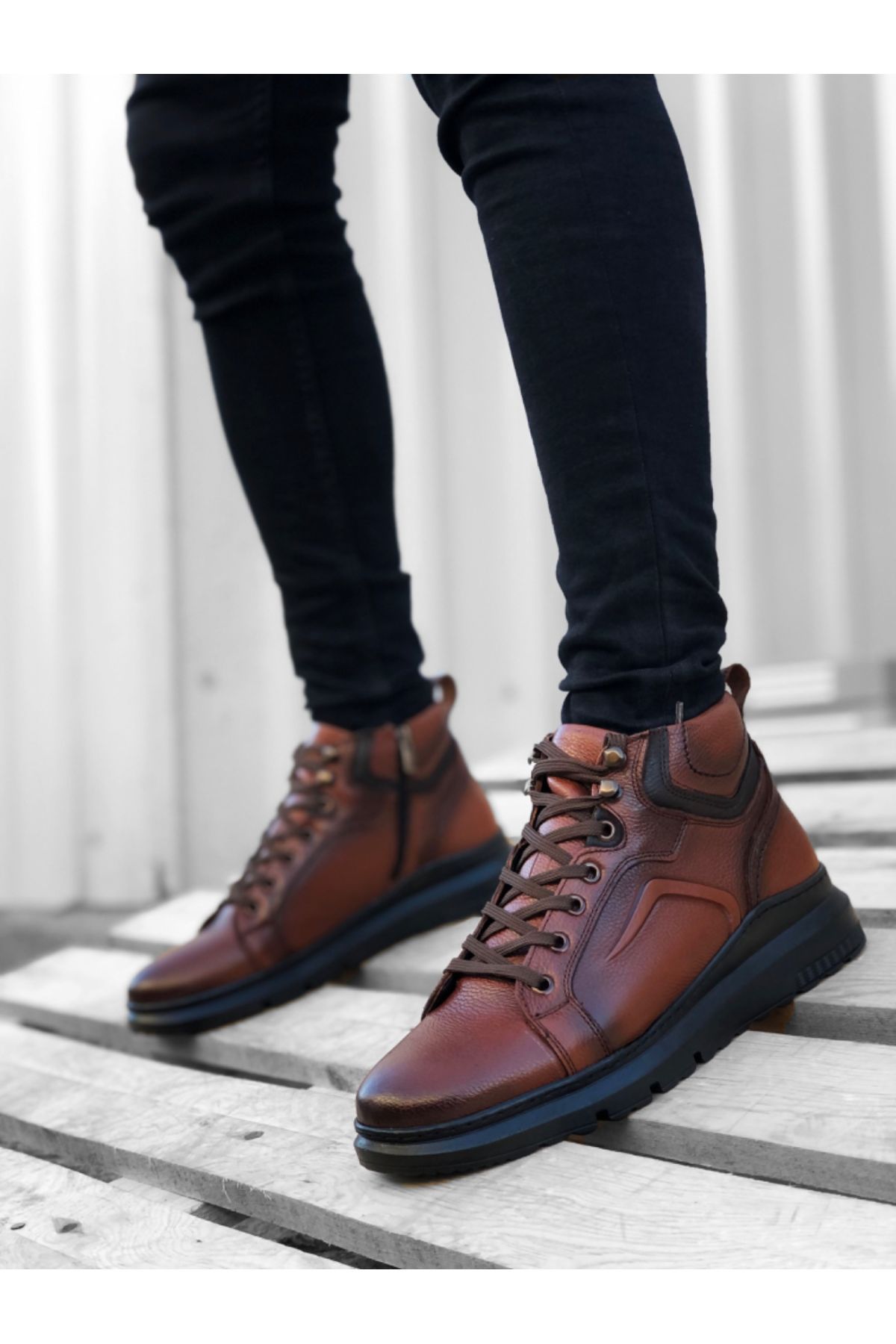 946 İçi Dışı Hakiki Deri Fermuarlı Taba Erkek Spor Yarım Bilek Bot