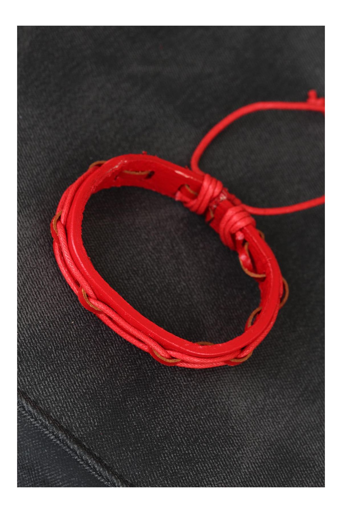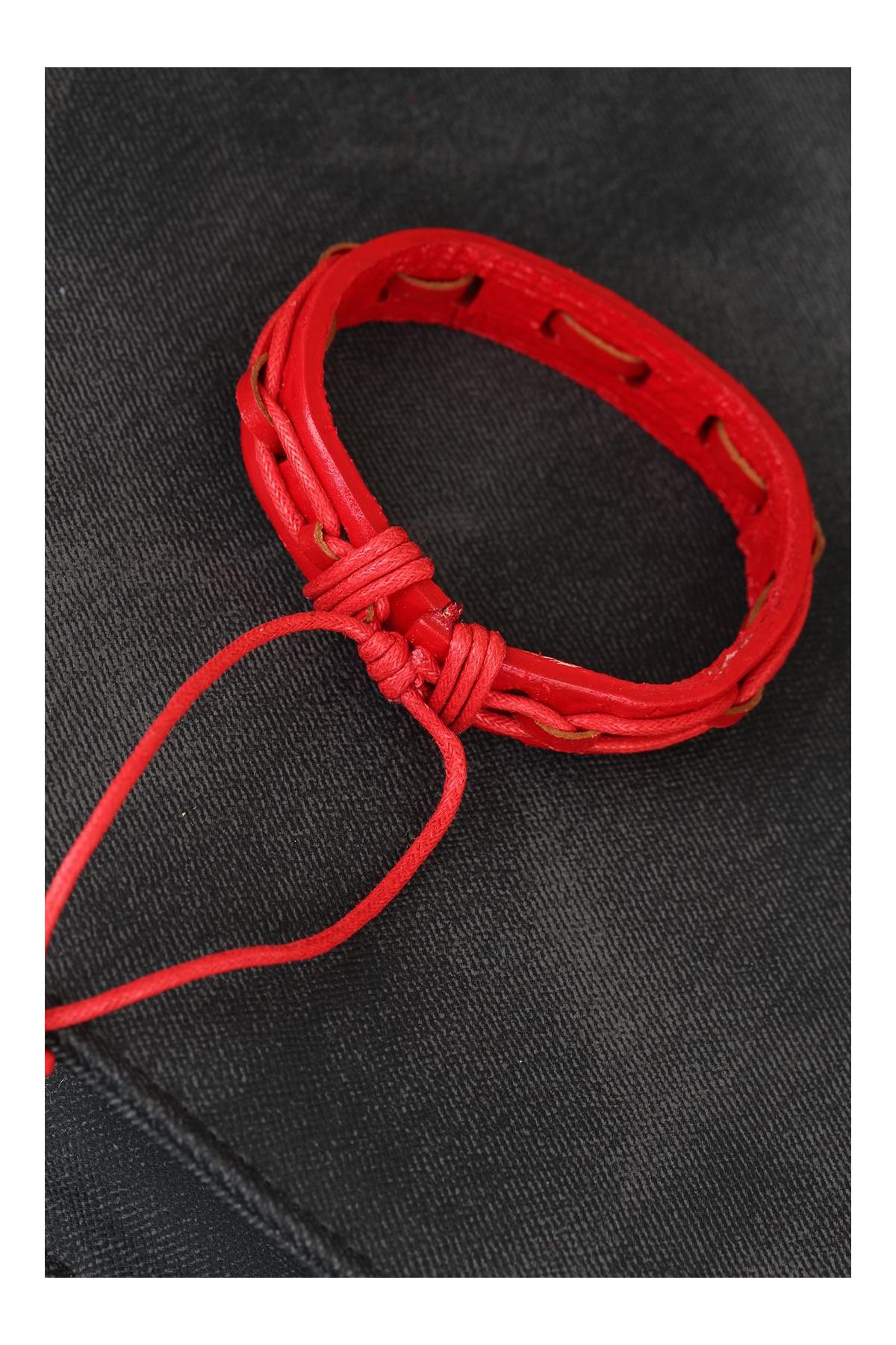 Kırmızı Renk Ayarlamalı İpli Deri Erkek Bileklik - TJ-EB1865
