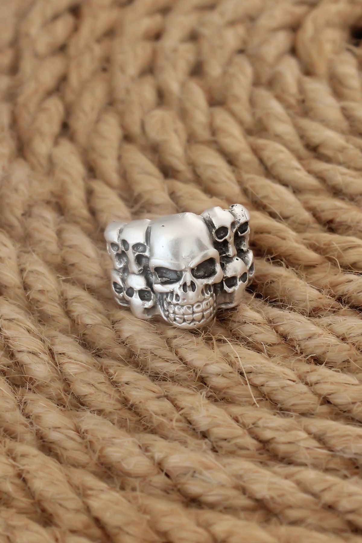 943 Antik Gümüş Renk Kuru Kafa Model Ayarlanabilir Erkek Yüzük
