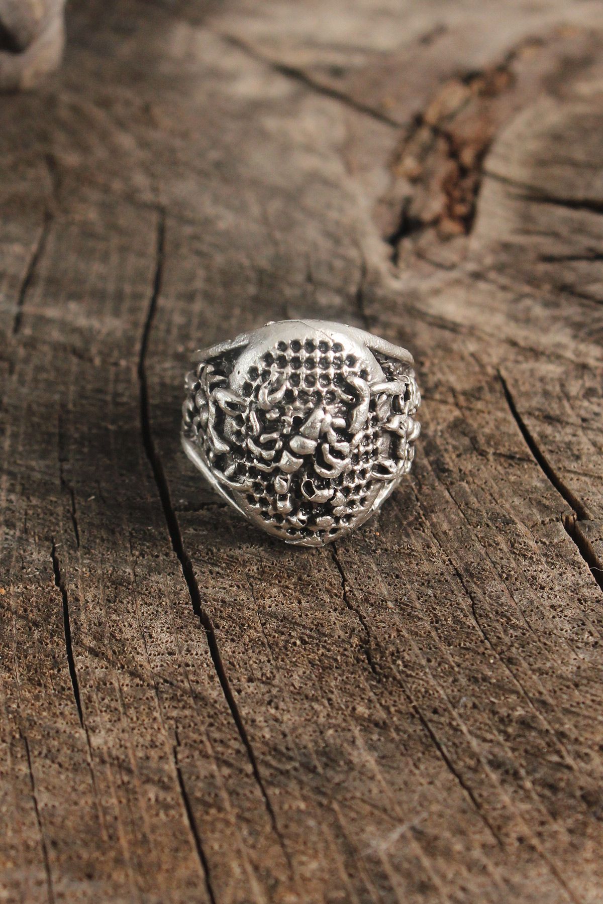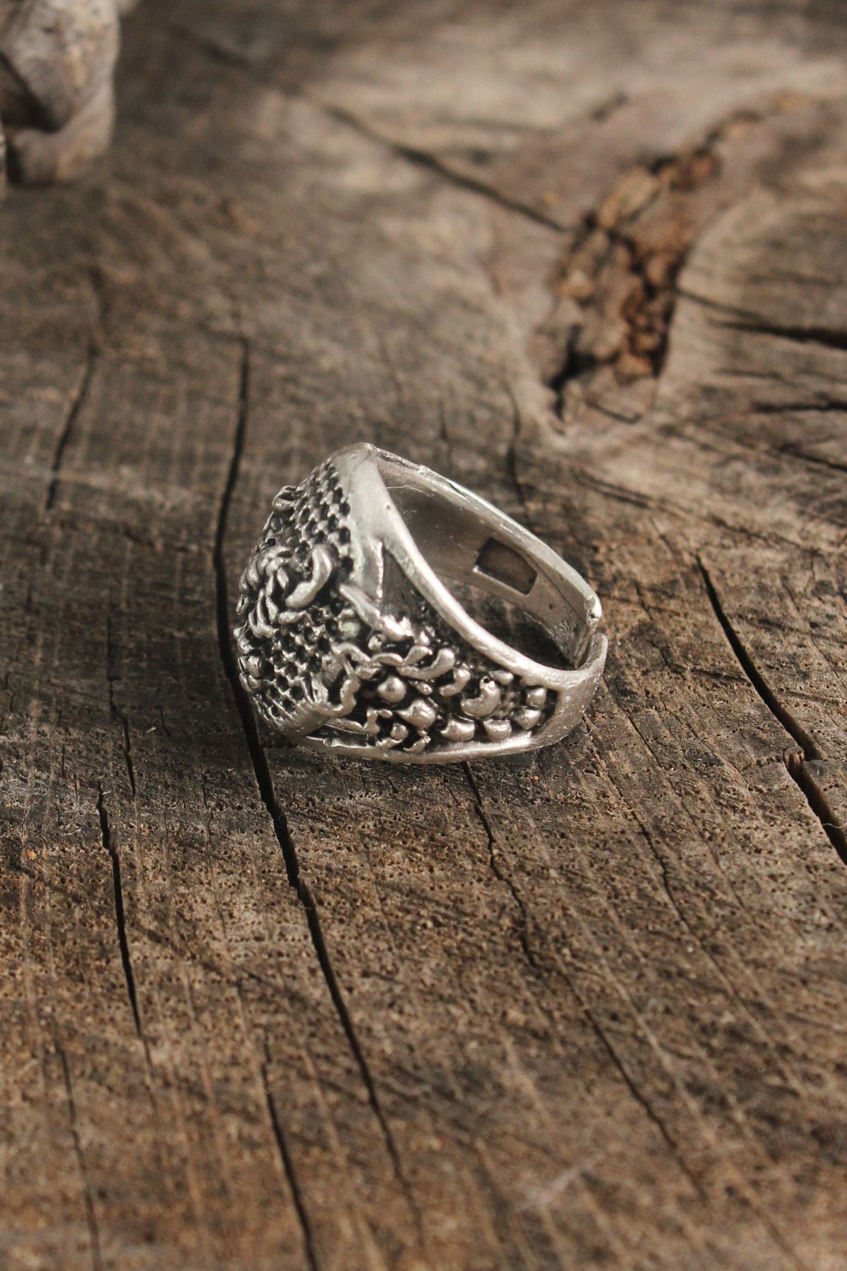 Antik Gümüş Renk Akrep İşleme Ayarlanabilir Erkek Yüzük - TJ-EY612