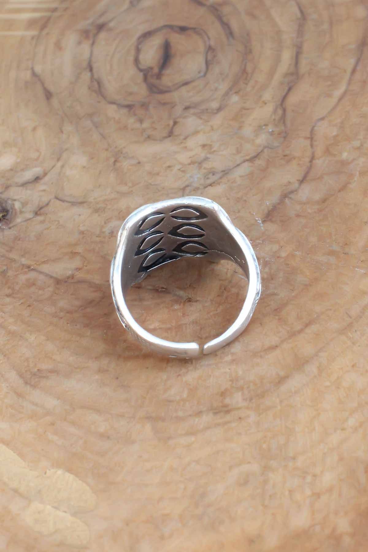 Motifli Gümüş Renk Ayarlanabilir Erkek Yüzük - TJ-EY540