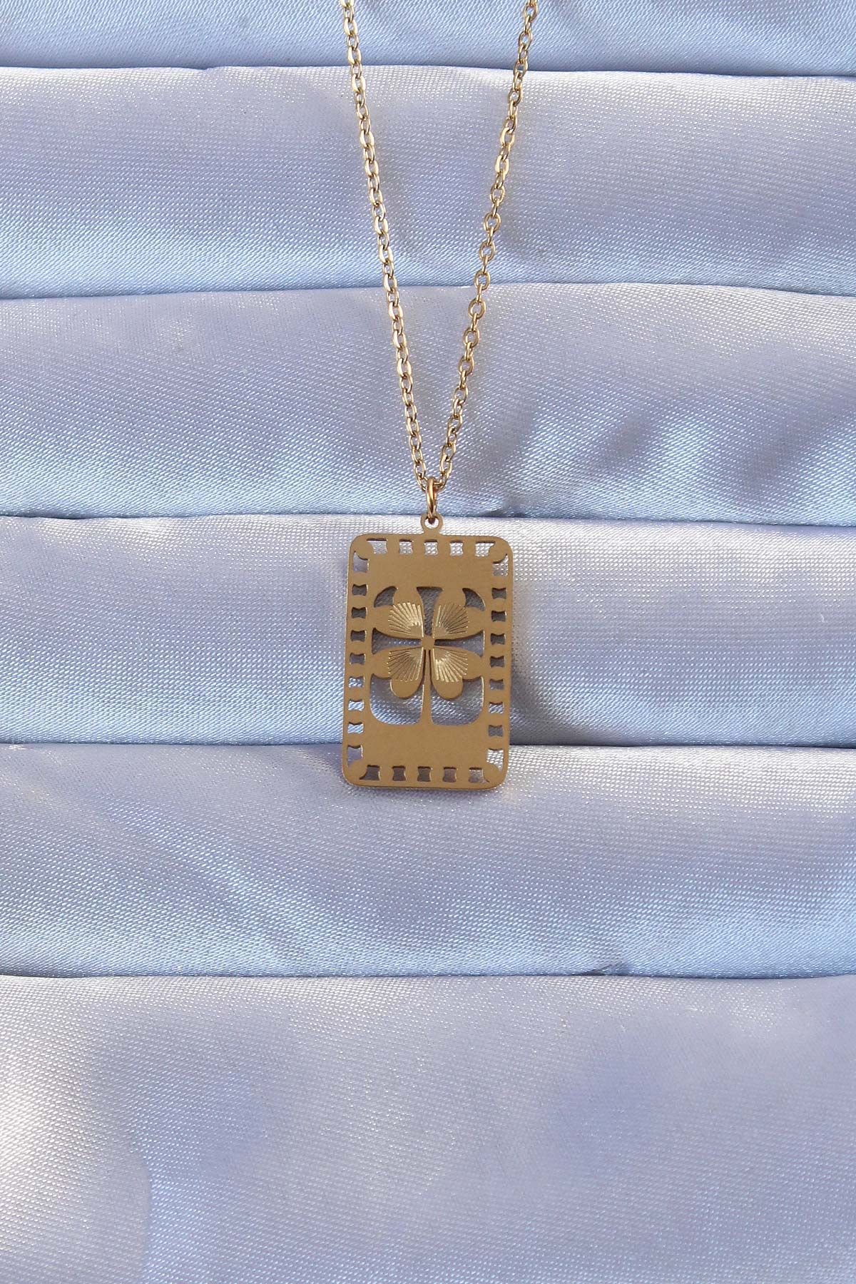 316L Altın Renk İşlemeli Yonca Model Vintage Kolye - TJ-BKO9267