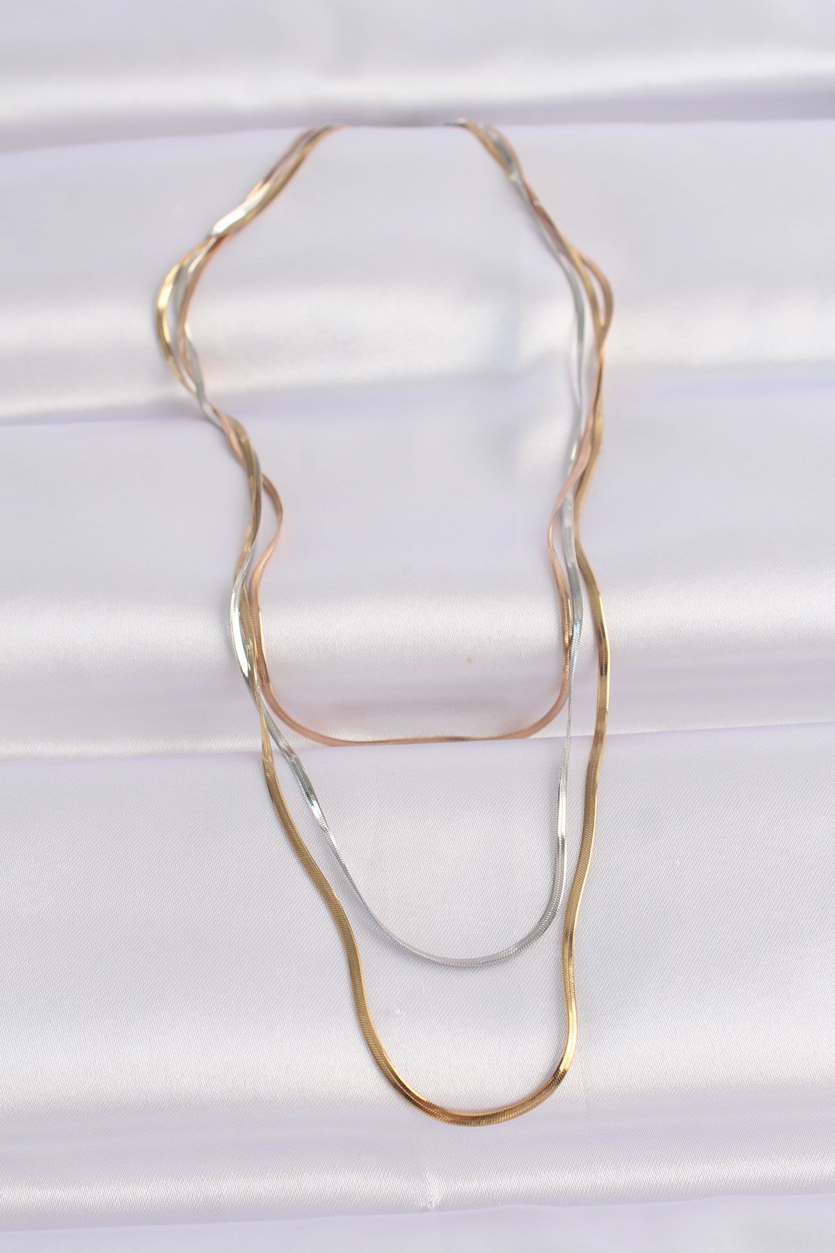 316L Çelik 3 Renkli İtalyan Zincir Çoklu Kolye - TJ-BKO8641