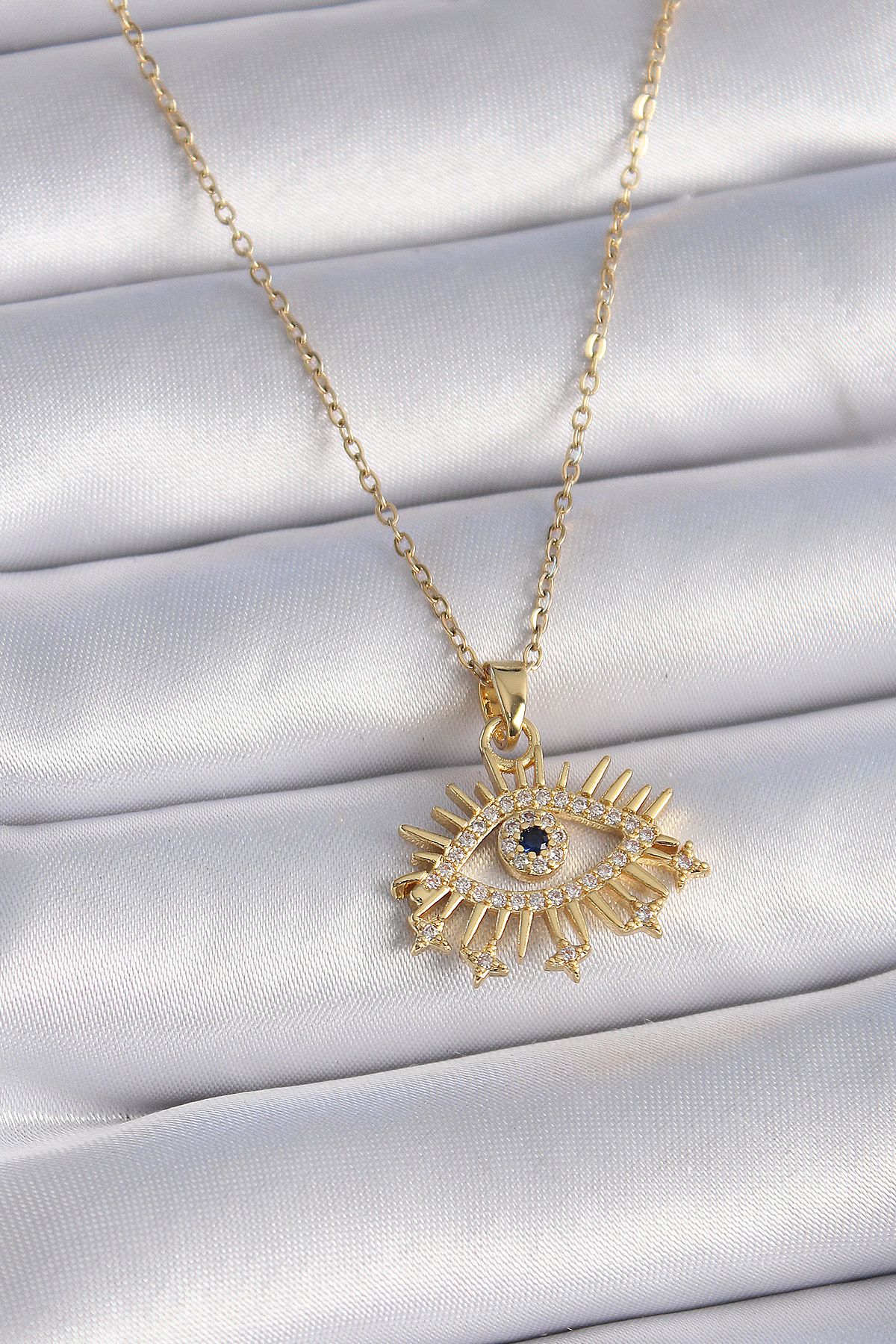 316L Çelik Gold Renk Zirkon Taşlı Göz Model Kadın Kolye - TJ-BKO9435