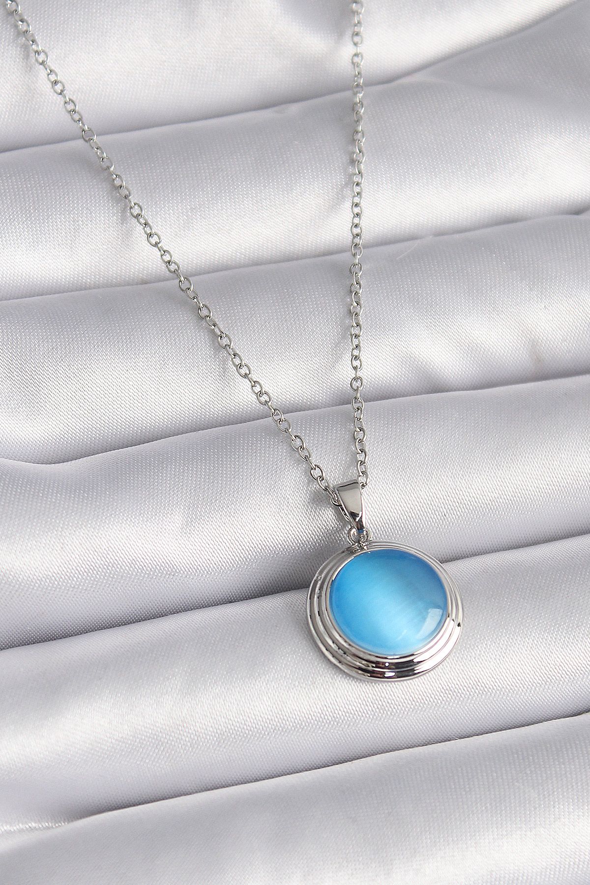 316L Çelik Gümüş Renk Mavi Sedefli Daire Model Kadın Kolye - TJ-BKO9424