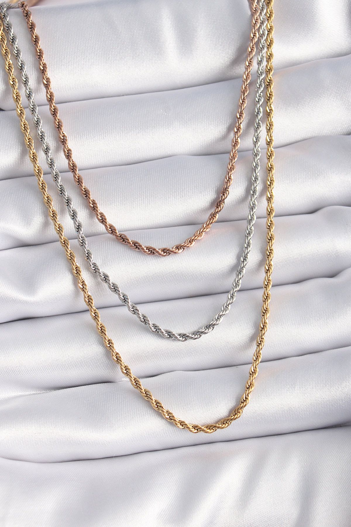316L Çelik Mix Renk Burgu Zincir Model Kadın Kolye - TJ-BKO9287