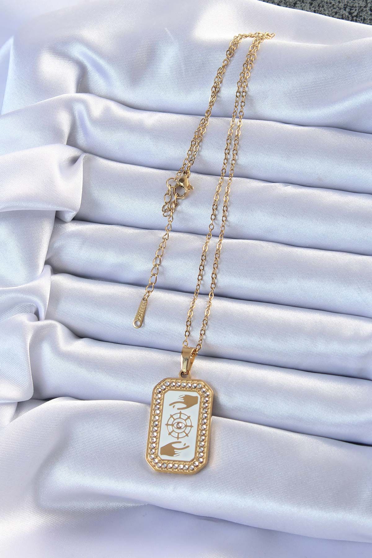 316L Çelik Zincir Altın Renk Mineli Zirkon Taşlı Göz Figür Tarot Kolye - TJ-BKO9217