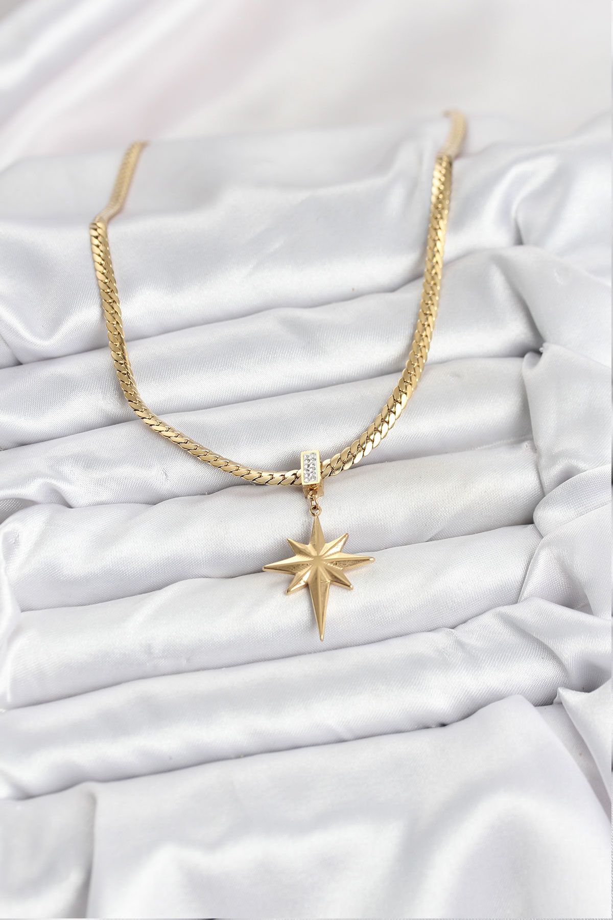 316L Çelik Zincir Gold Renk Kutup Yıldızı Model Kadın Kolye - TJ-BKO10627