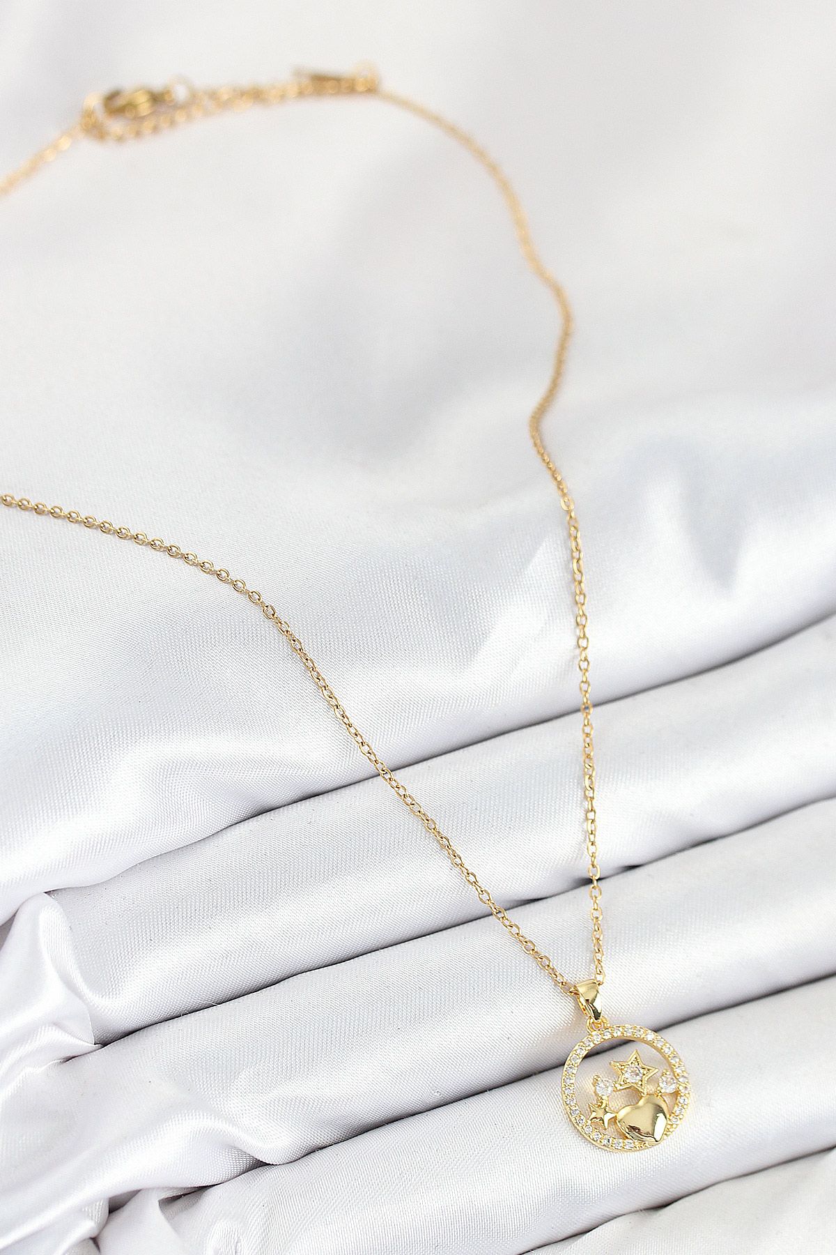 316L Çelik Zirkon Taşlı Yıldız Ve Kalp Model Gold Renk Kadın Kolye - TJ-BKO10522