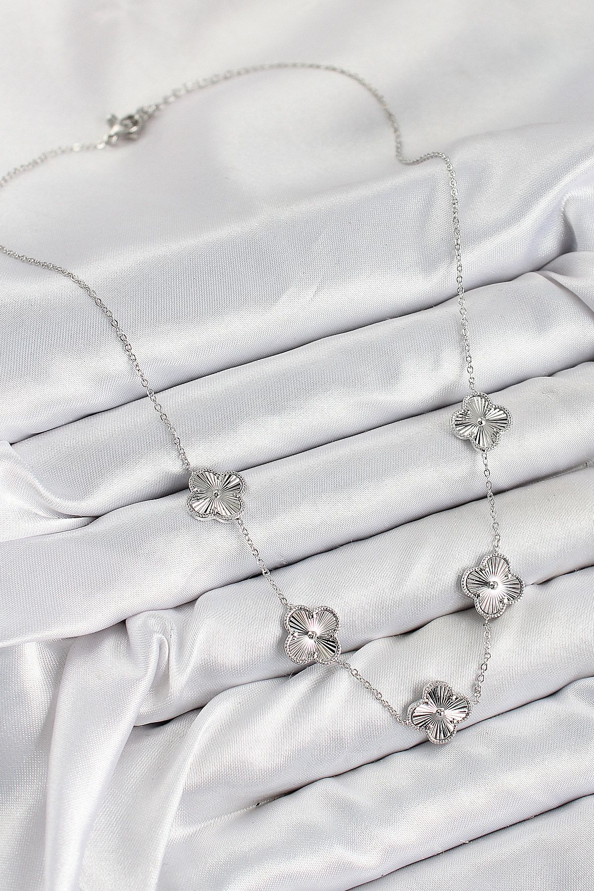 Pirinç VIP Yonca Model Gümüş Renk Kadın Kolye - TJ-BKO10483