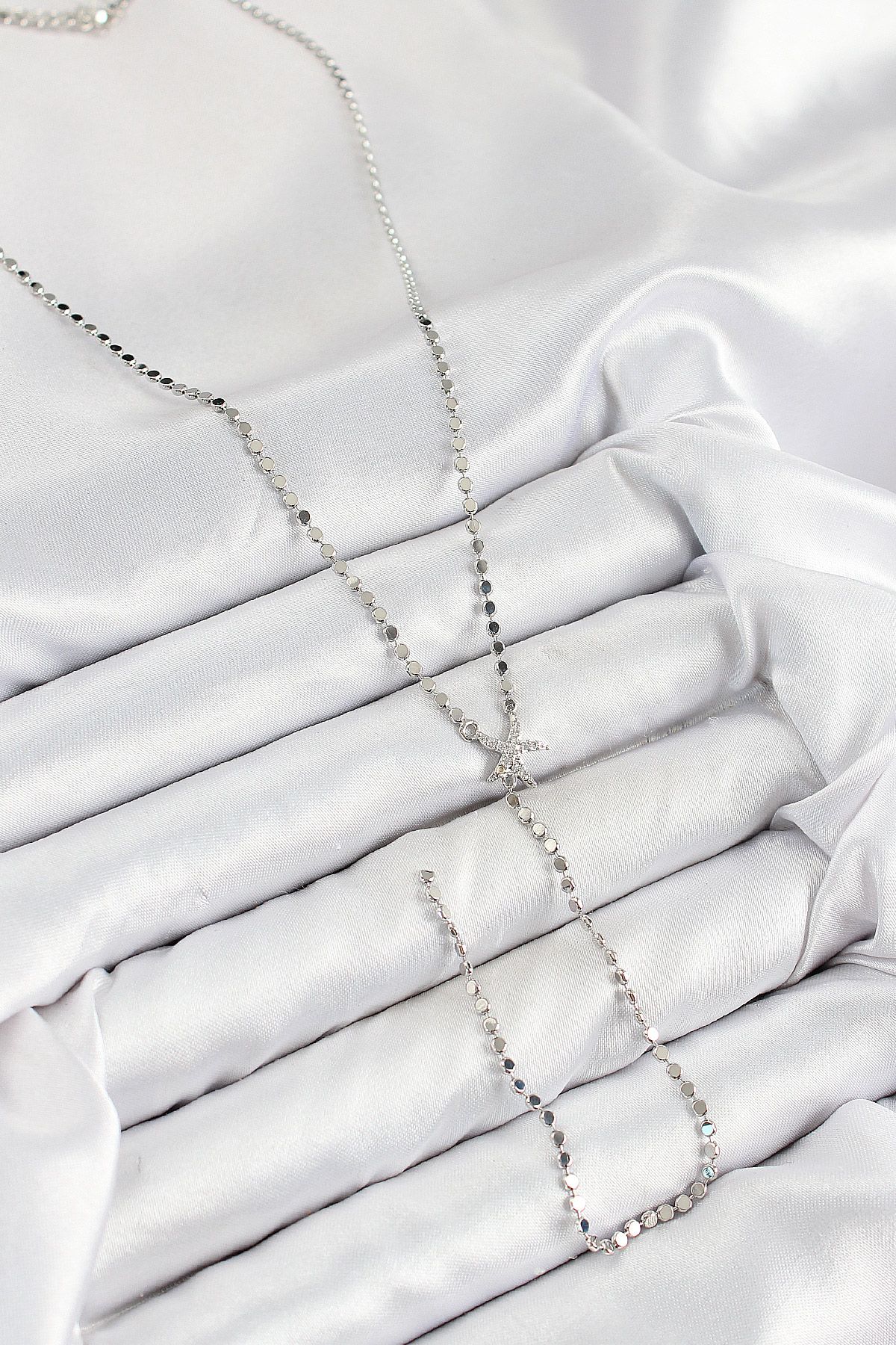 Pirinç Zirkon Taşlı Ezme Zincirli Deniz Yıldızı Model Gümüş Renk Y Kolye - TJ-BKO10466