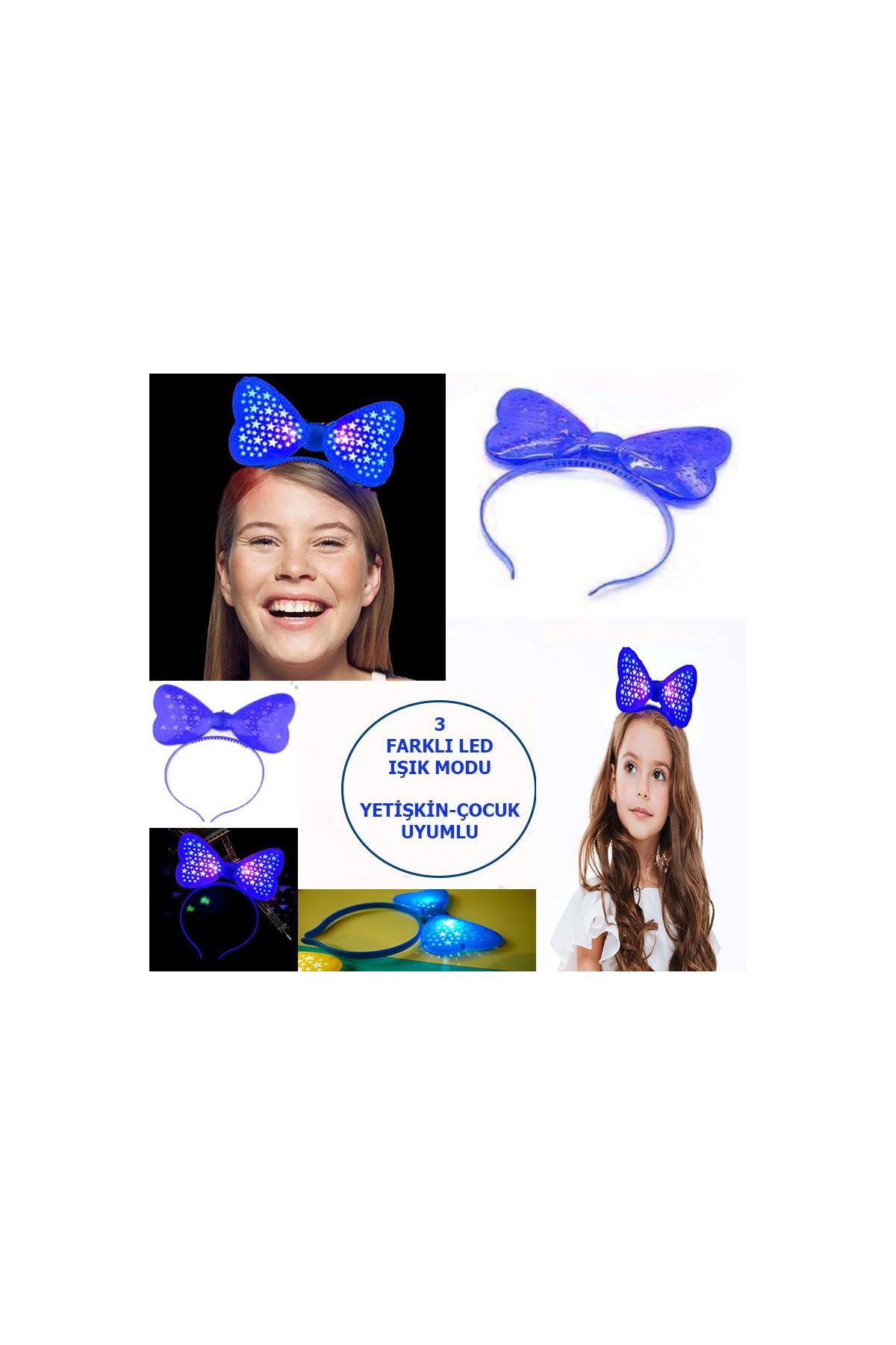 Mavi Renk Fonksiyonda Yanan Led Işıklı Fiyonk Taç