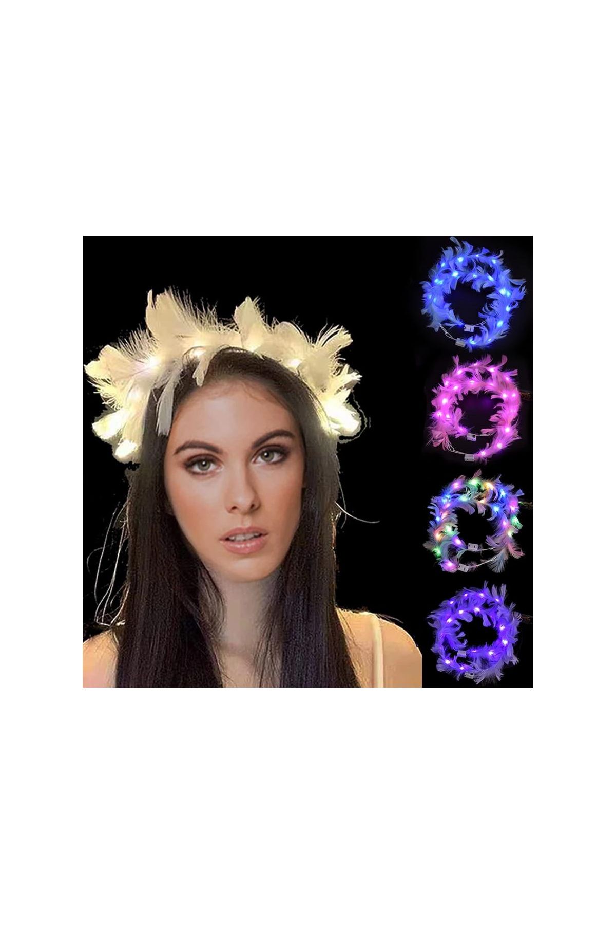 Led Işıklı Rengarenk Yanan 3 Fonksiyonlu Otrişli Parti Tacı