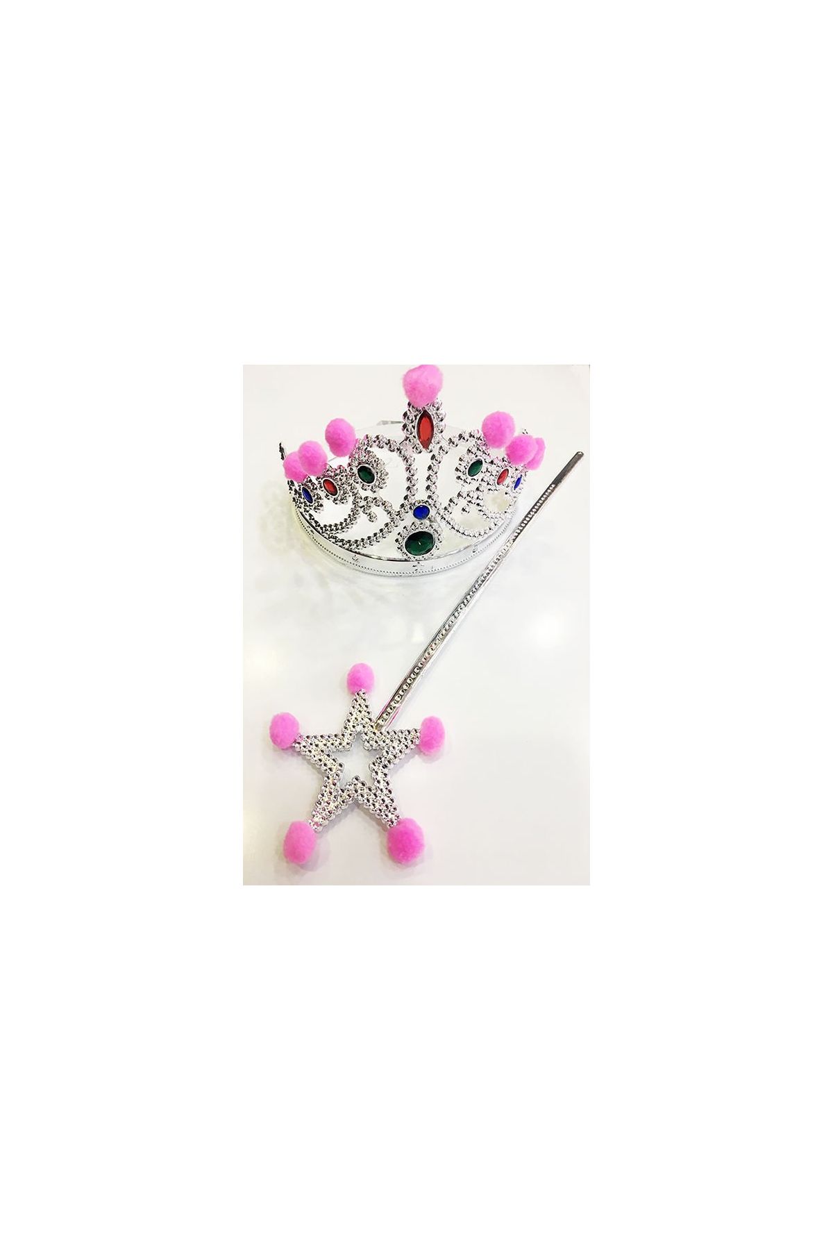193 Parti Aksesuar Pembe Ponponlu Gümüş Renk Prenses Tacı Gümüş Renk Prenses Asası