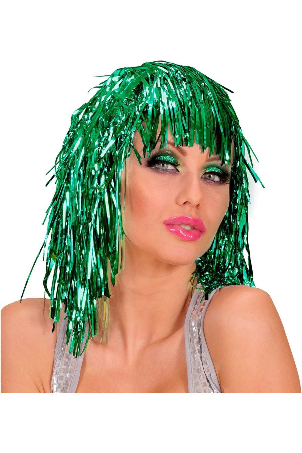 Parti tarzınıza enerji katın! Göz alıcı metalize yeşil peruk, parlak yapısıyla ışık altında mükemmel bir görünüm sağlar. Eğlenceli davetler, yılbaşı kutlamaları, doğum günleri ve sahne gösterileri için idealdir.