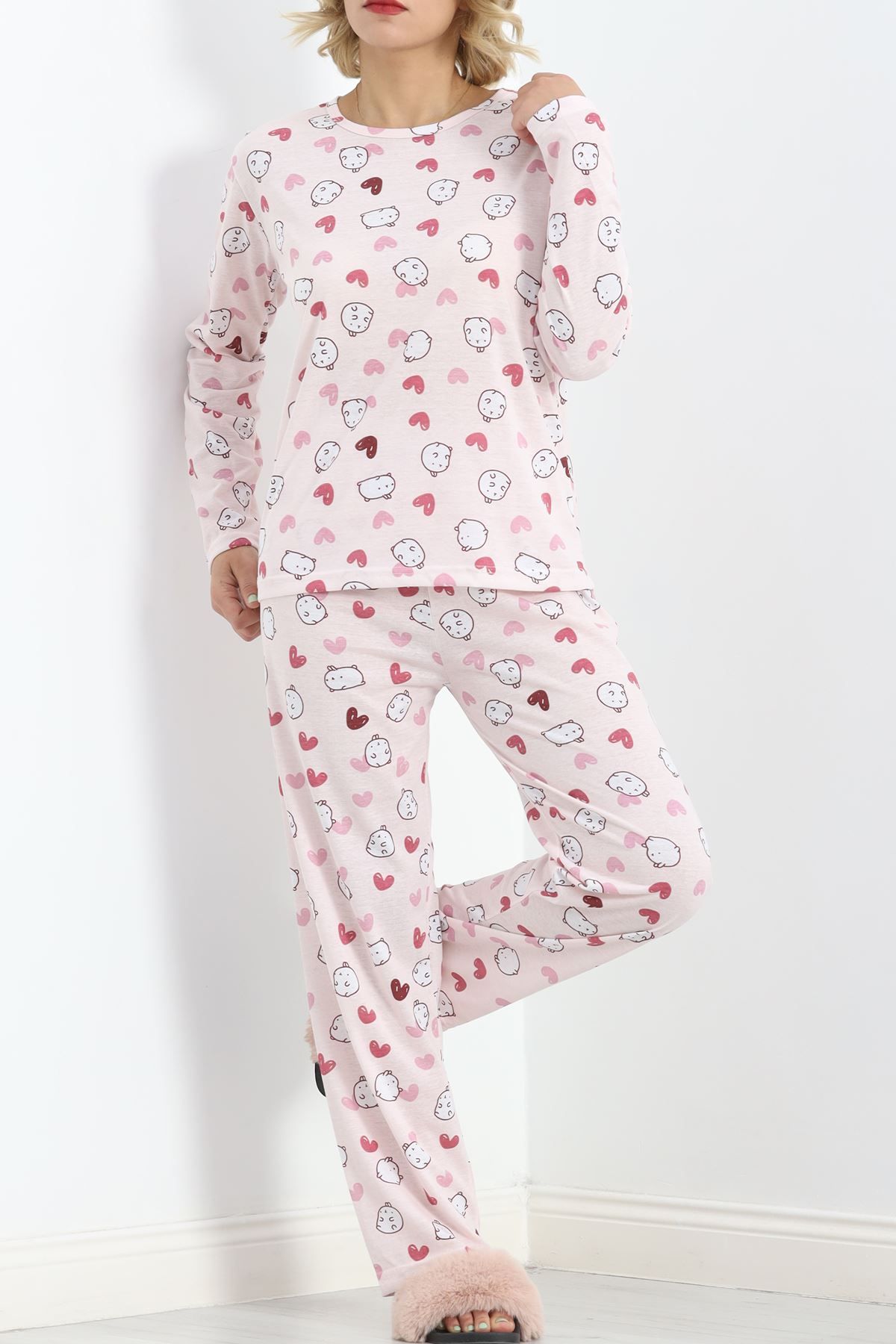 Alt Üst Aynı Rotasyon Pijama Takımı Tozpembe