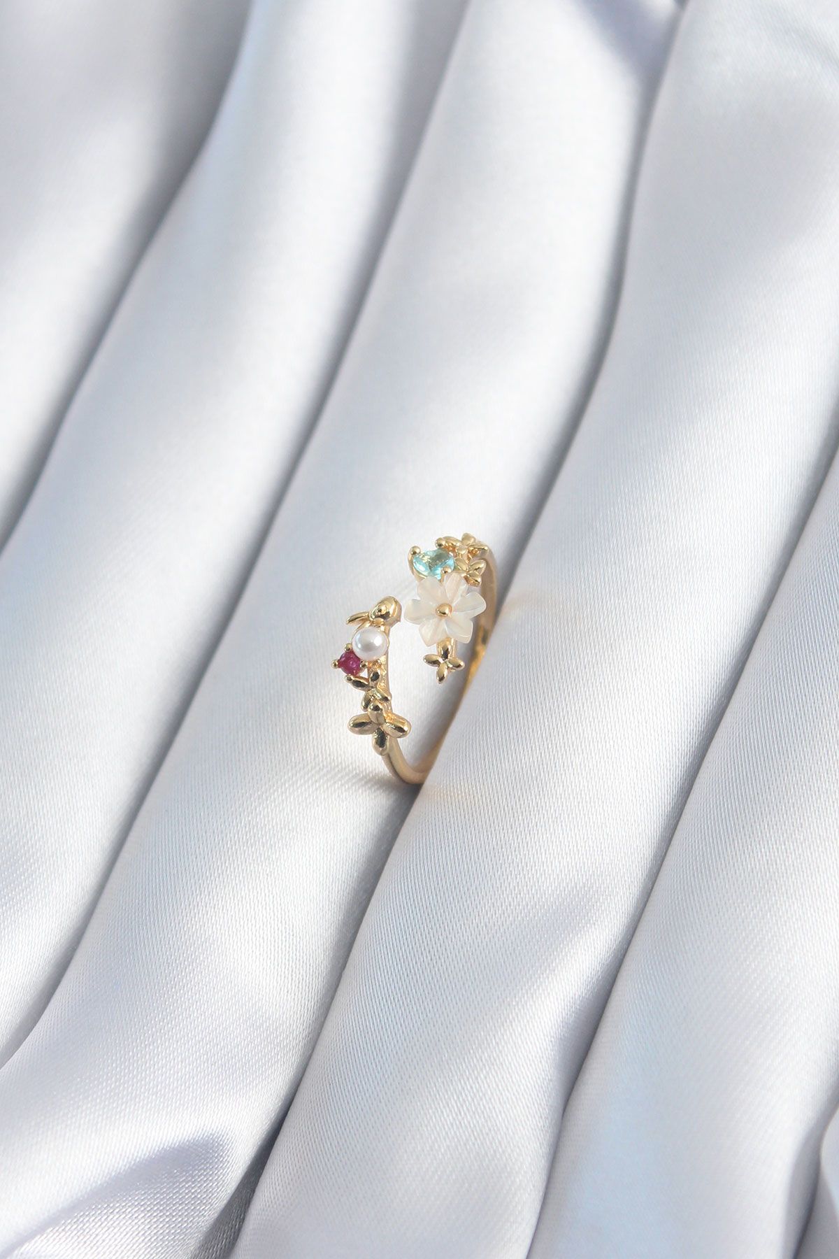 943 Pirinç Gold Renk Çiçek Model Zirkon Taş Detay Kadın Yüzük