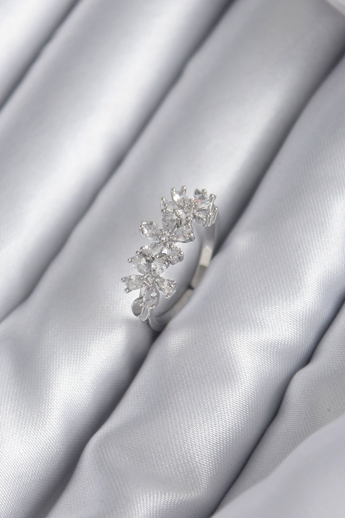 943 Pirinç Gold Renk Zirkon Taşlı Çiçek Model Kadın Yüzük