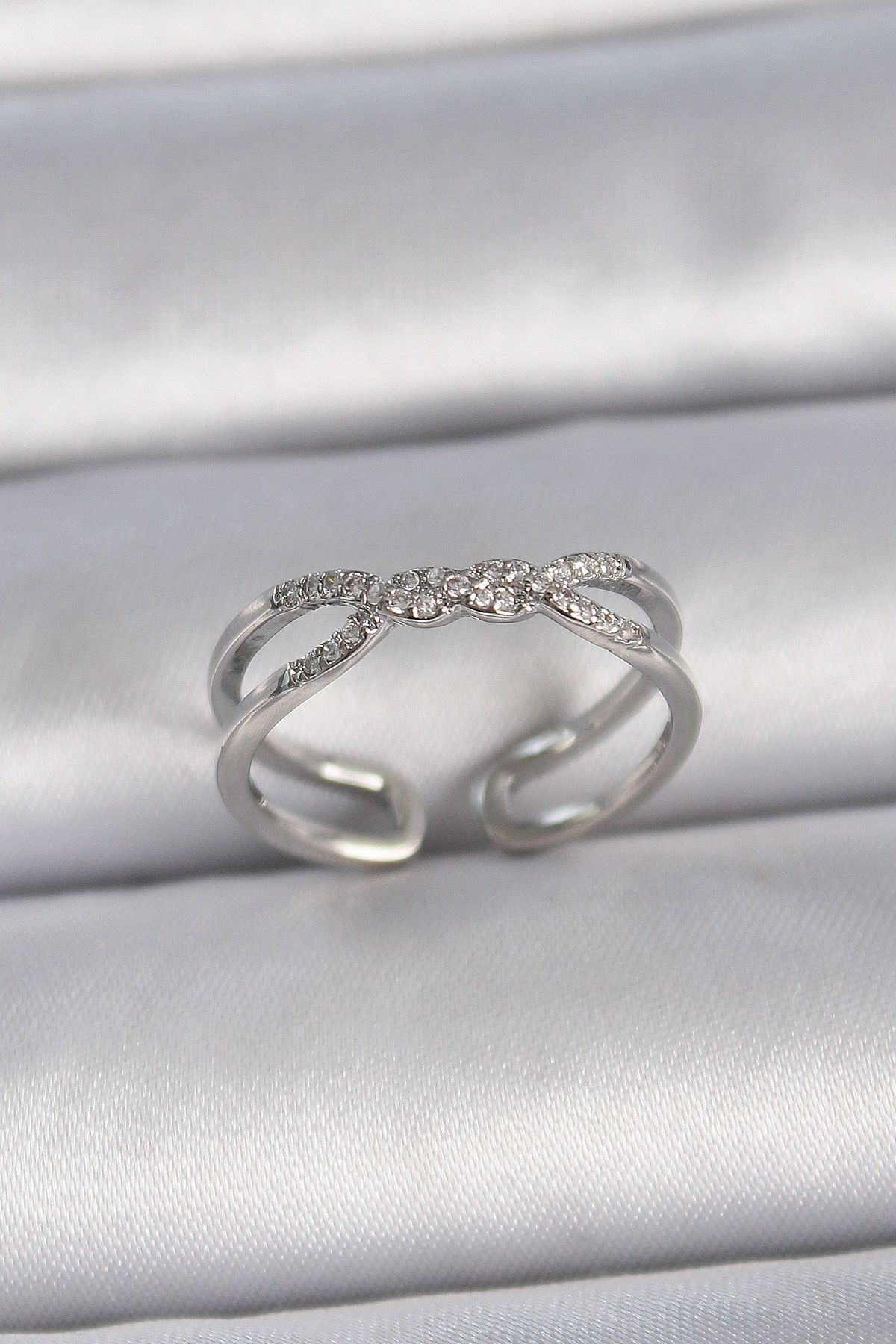 Pirinç Gümüş Renk Ayarlanabilir Zirkon Taşlı Sarmal Model Kadın Yüzük - TJ-BYK3401