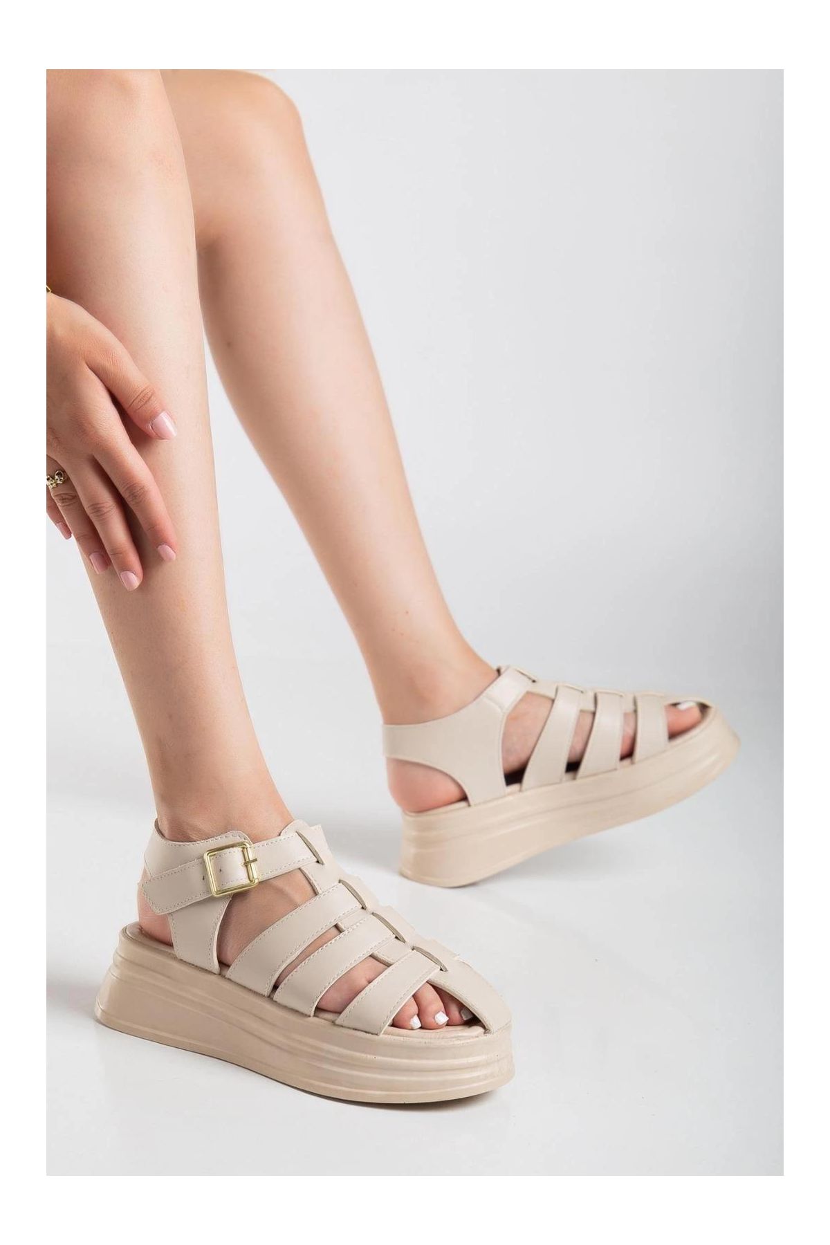 Toten Bej Cilt Kemerli Sandalet--Renk : BejDetay : Kemerli Ortepedik SandaletMalzeme : CiltTopuk Boyu 5 CmTaban Meteryali : Poli TabanKalıp : Standart Ayak Ölçülerine Göre TAM Kalıp