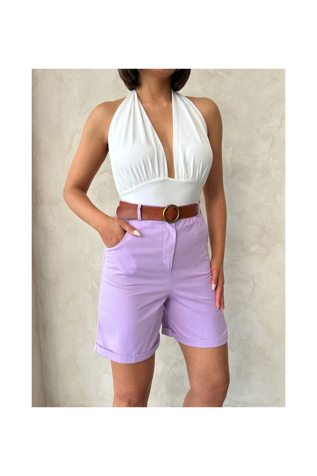 Kemerli gabardin şort lila s25735--Bu lila renkli kemerli gabardin şort, yaz aylarının vazgeçilmez parçası olmaya aday! Şıklığı ve rahatlığı bir arada sunan şort, gardırobunuzun favori parçalarından biri olmaya aday. Özellikleri: Kemer detayı ile şık bir görünüm sunar. Kaliteli gabardin kumaşı sayesinde uzun ömürlü kullanım imkanı sağlar. Rahat kesimi ile hareket özgürlüğü sunar. Yüksek bel tasarımı ile vücudu sıkmaz, konforlu bir kullanım sağlar. Günlük kullanıma uygun şık tasarımı ile her kombinle rahatlıkla uyum sağlar.