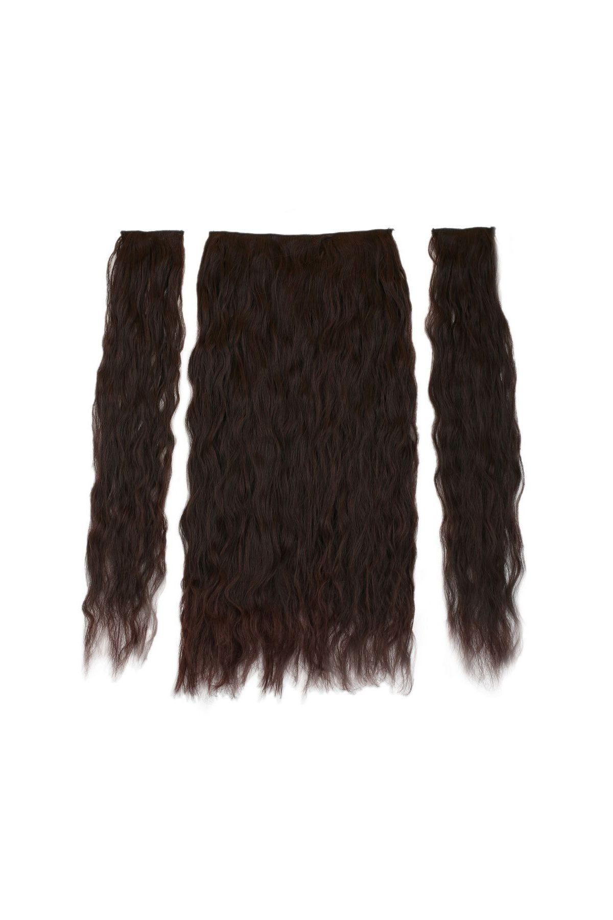 Fiber Sentetik Kabarık Dalgalı Yarım Ay + 2 Yan Çıt Çıt - Koyu Kahve