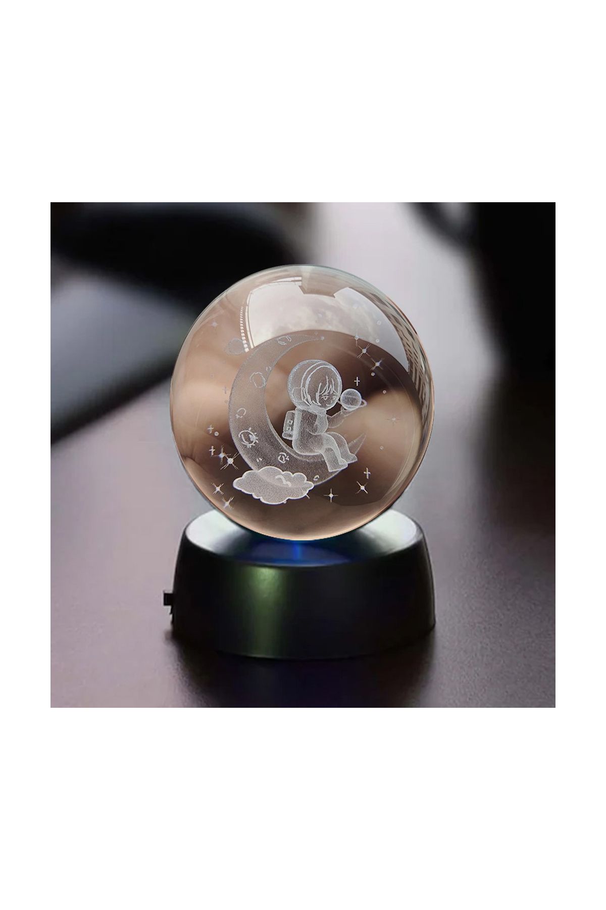 Ayda Oturan Astronot Temalı Işıklı Cam Küre