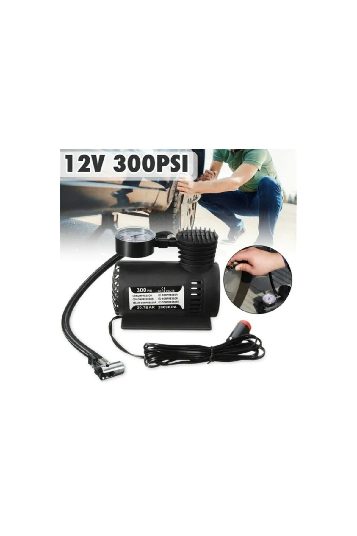 Plastik Gövde Oto Çakmaklıktan Beselenen Elektrikli Mini Hava Kompresörü.