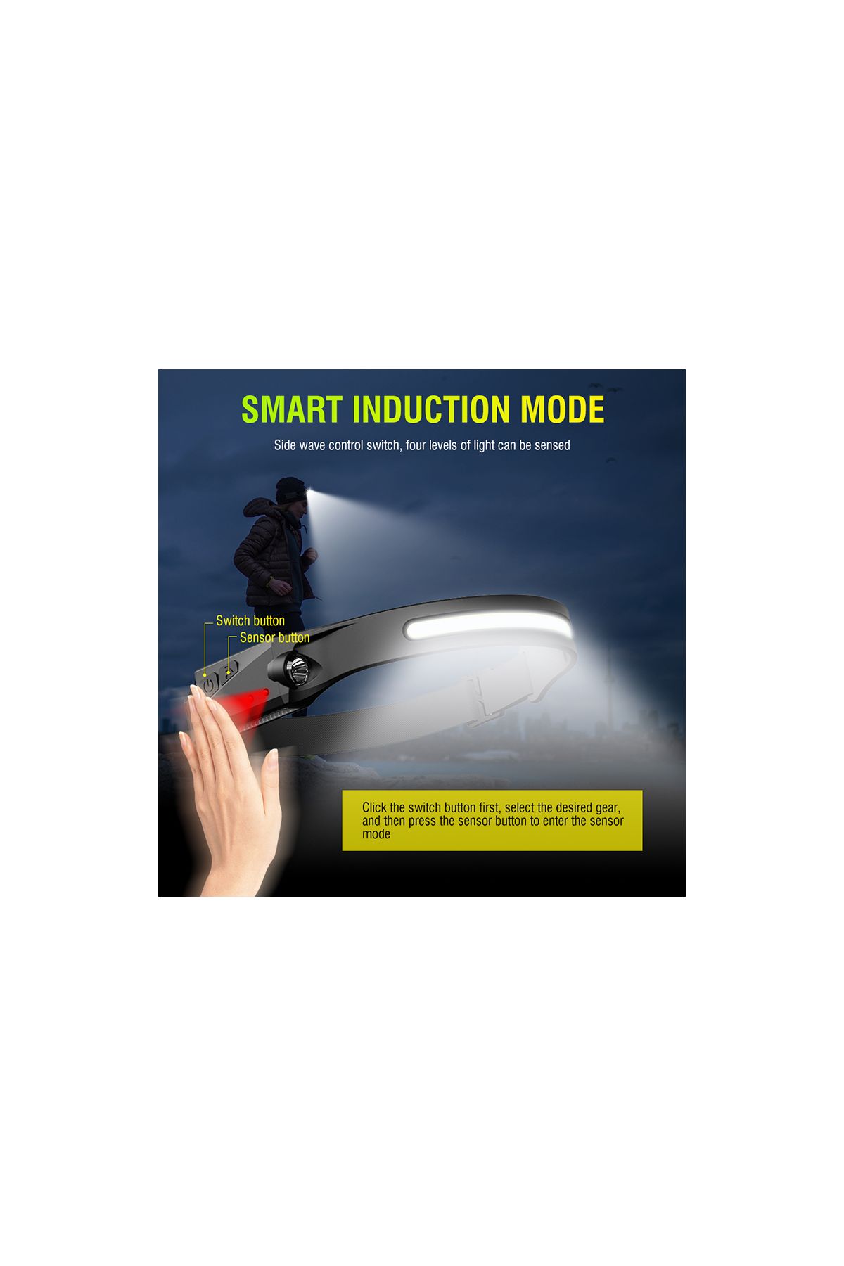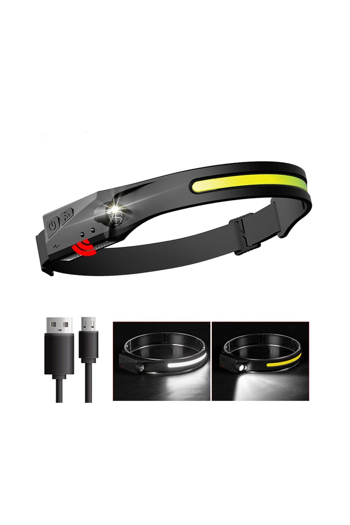 PS-001 5 Aydınlatma Modlu COB LED Sensörlü USB Şarj Edilebilir Dahili Pilli Kafa Lambası