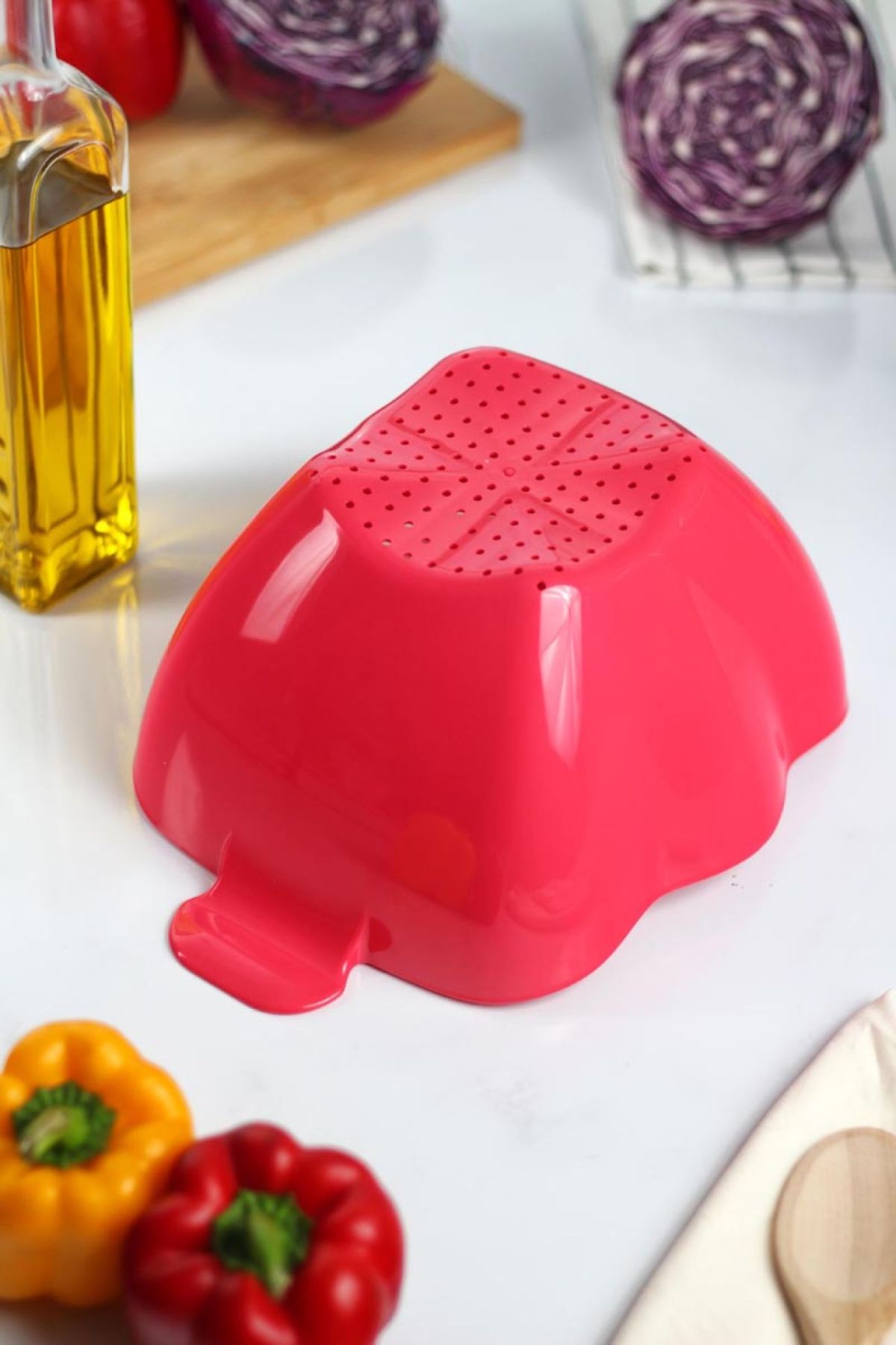 Akrilik Koyu Pembe Makarna Süzgeçi & Sebze Meyve Süzgeçi